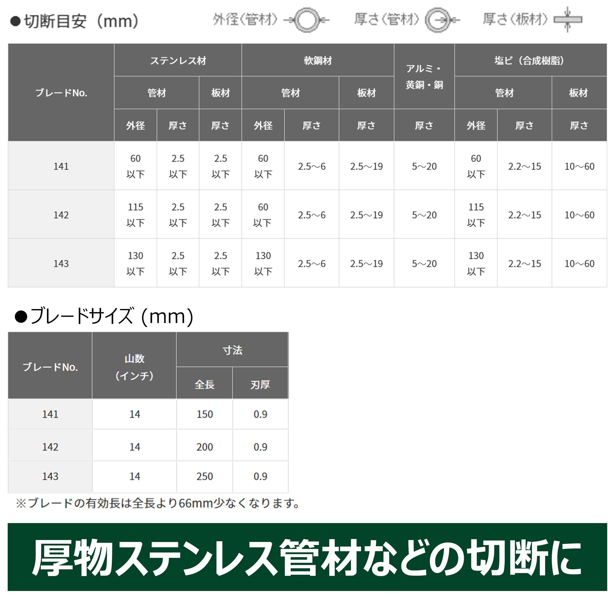 [注]ブレードの有効長は全長より66mm少なくなります。