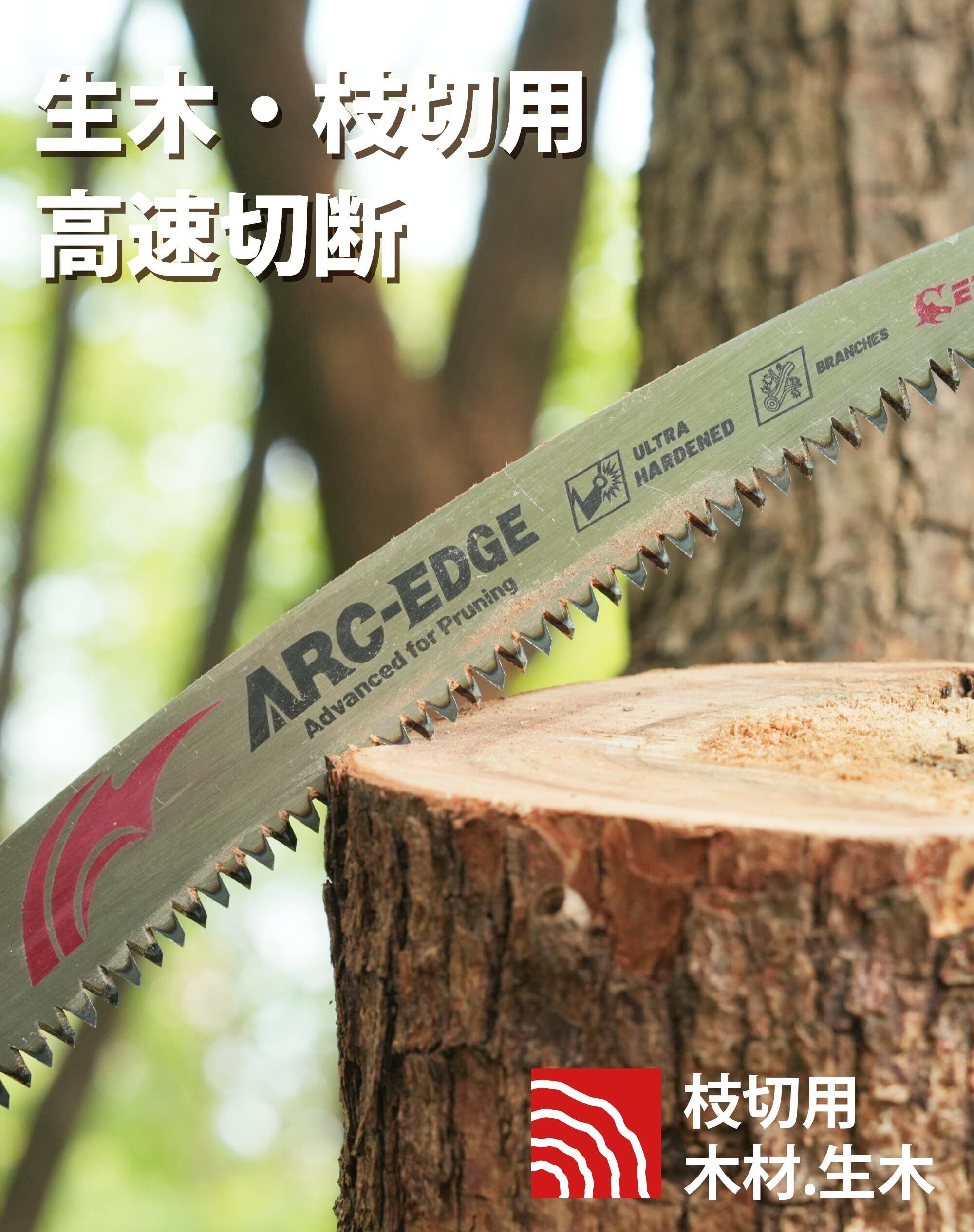 【生木・枝切用】生木の剪定、枝・幹の伐採用ノコギリ替刃です。衝擊燒入と研磨技術により、鋭くて切れ味抜群、庭木の剪定や、伐採に最適です。