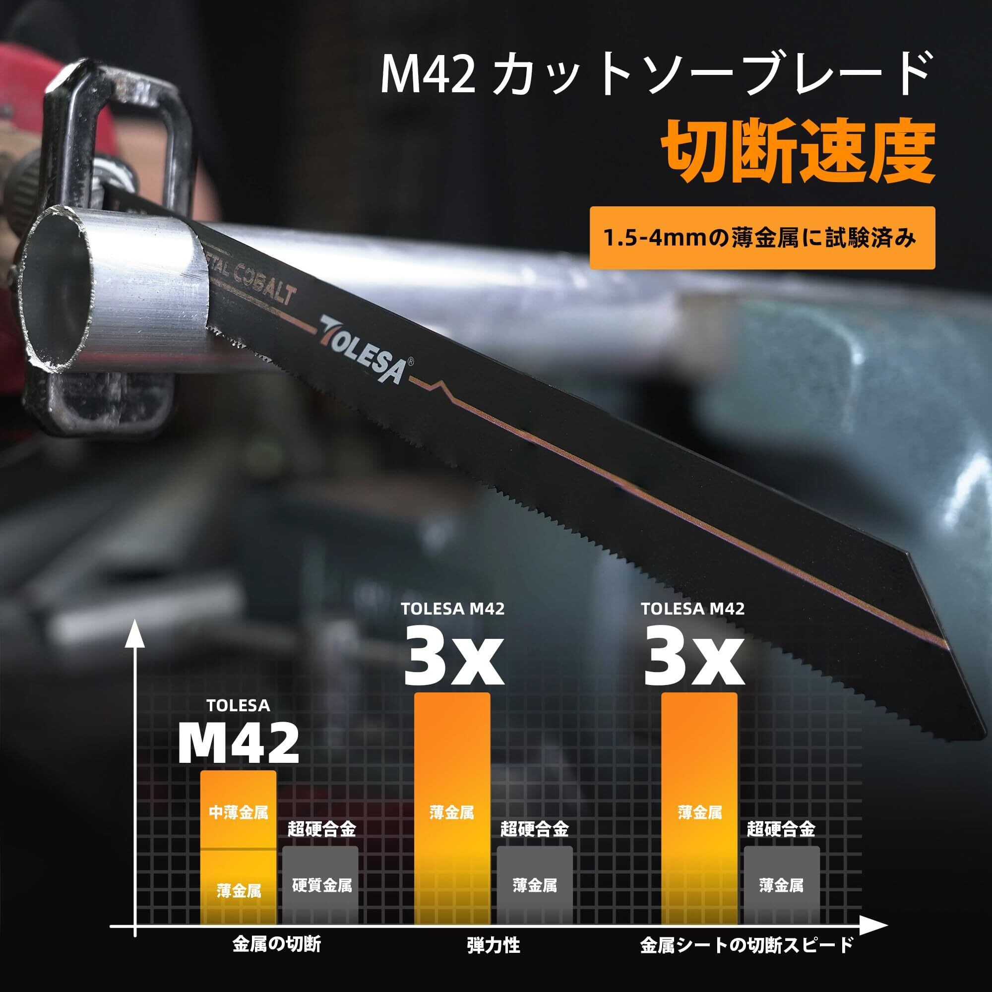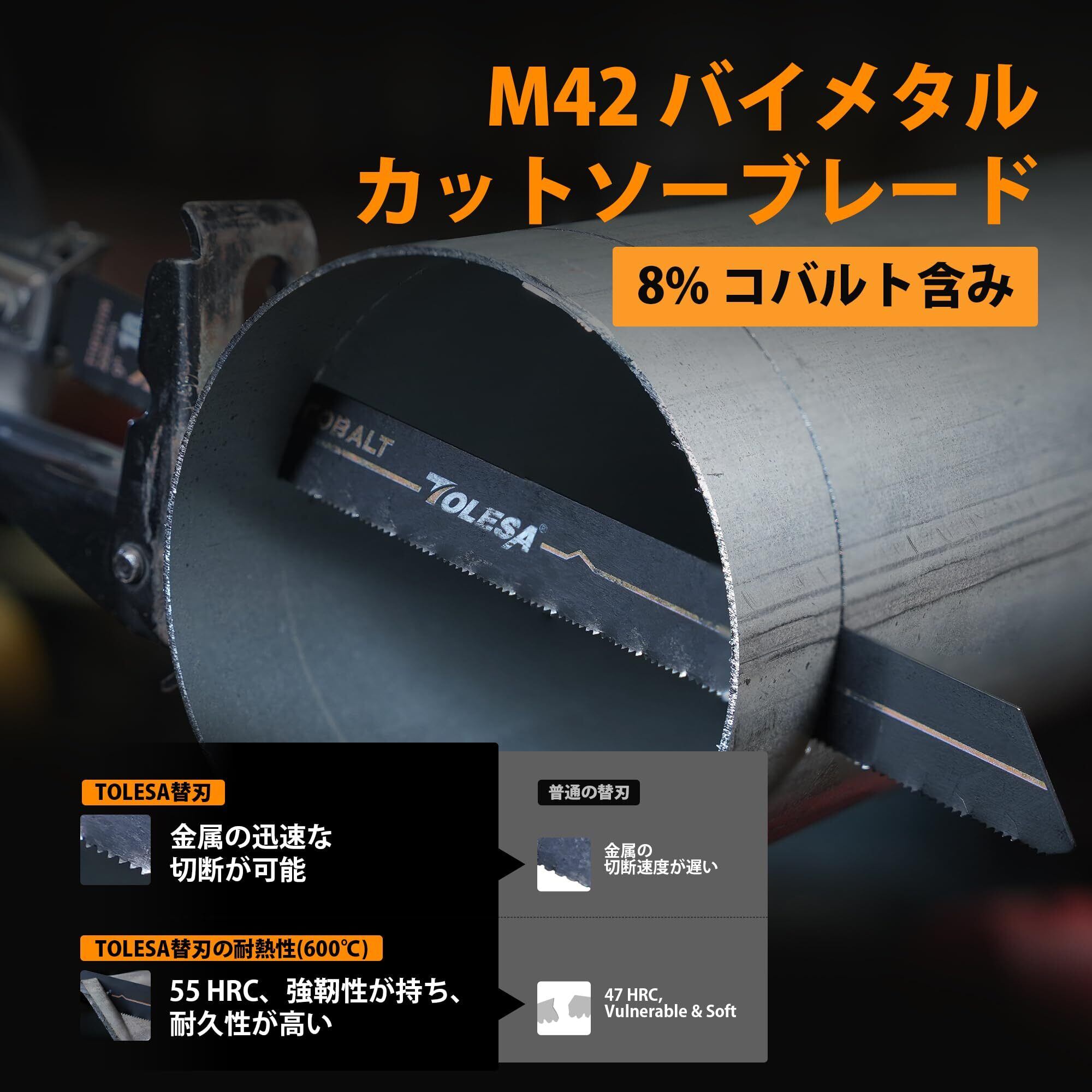 【高品質なM42バイメタル】TOLESAの高品質なM42バイメタルは8%のコバルトを含み、通常のバイメタル刃よりも耐熱性と耐久性が向上しています。また、強靭性も備えており、折れずに曲がることができます。
