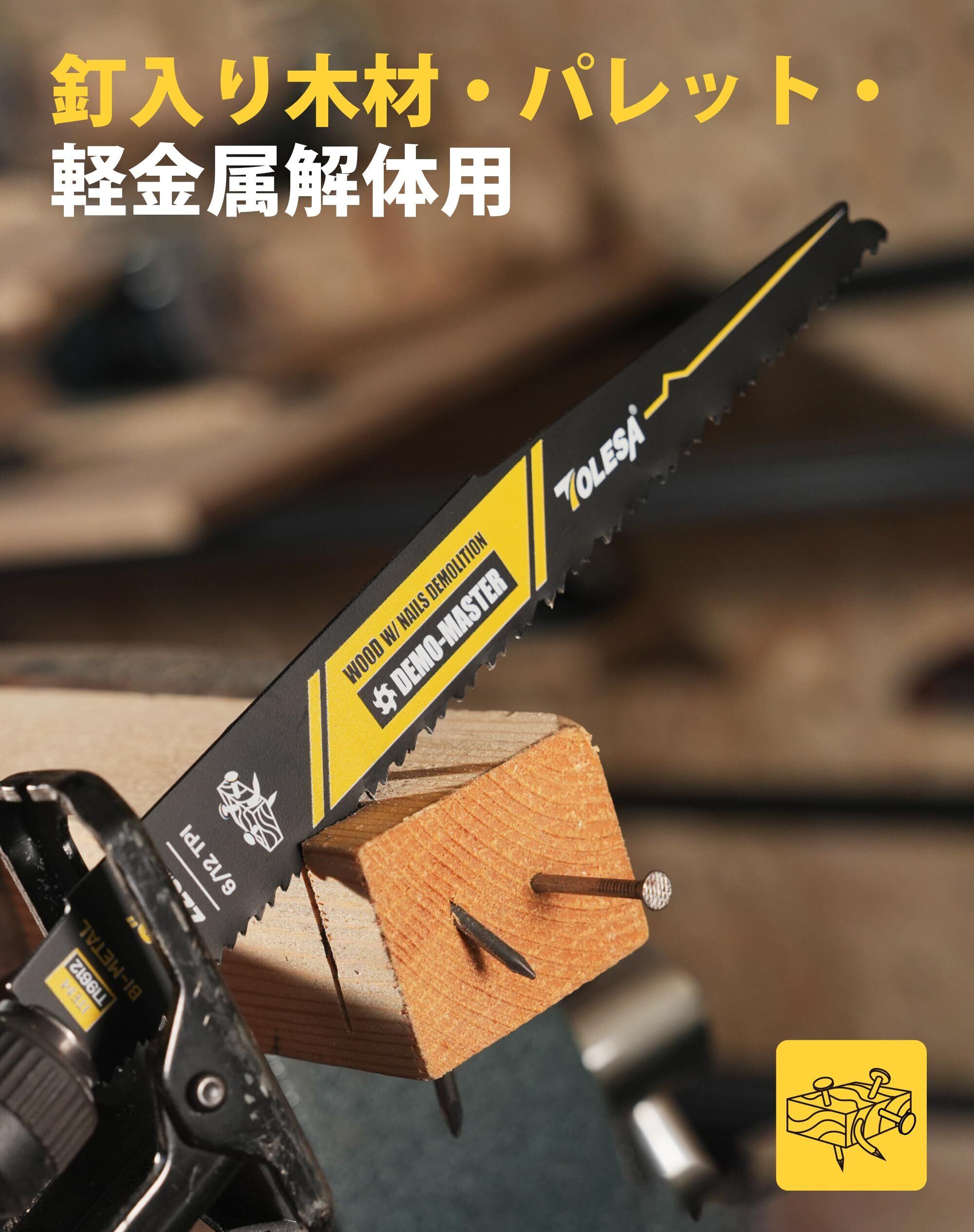【商品仕様】山数:6山+12山;材質:バイメタル + 8%コバルト;入数:25(本);全長:225(mm);刃厚:1.27(mm);主な切断材料:釘入り木材・パレット・軽金属。