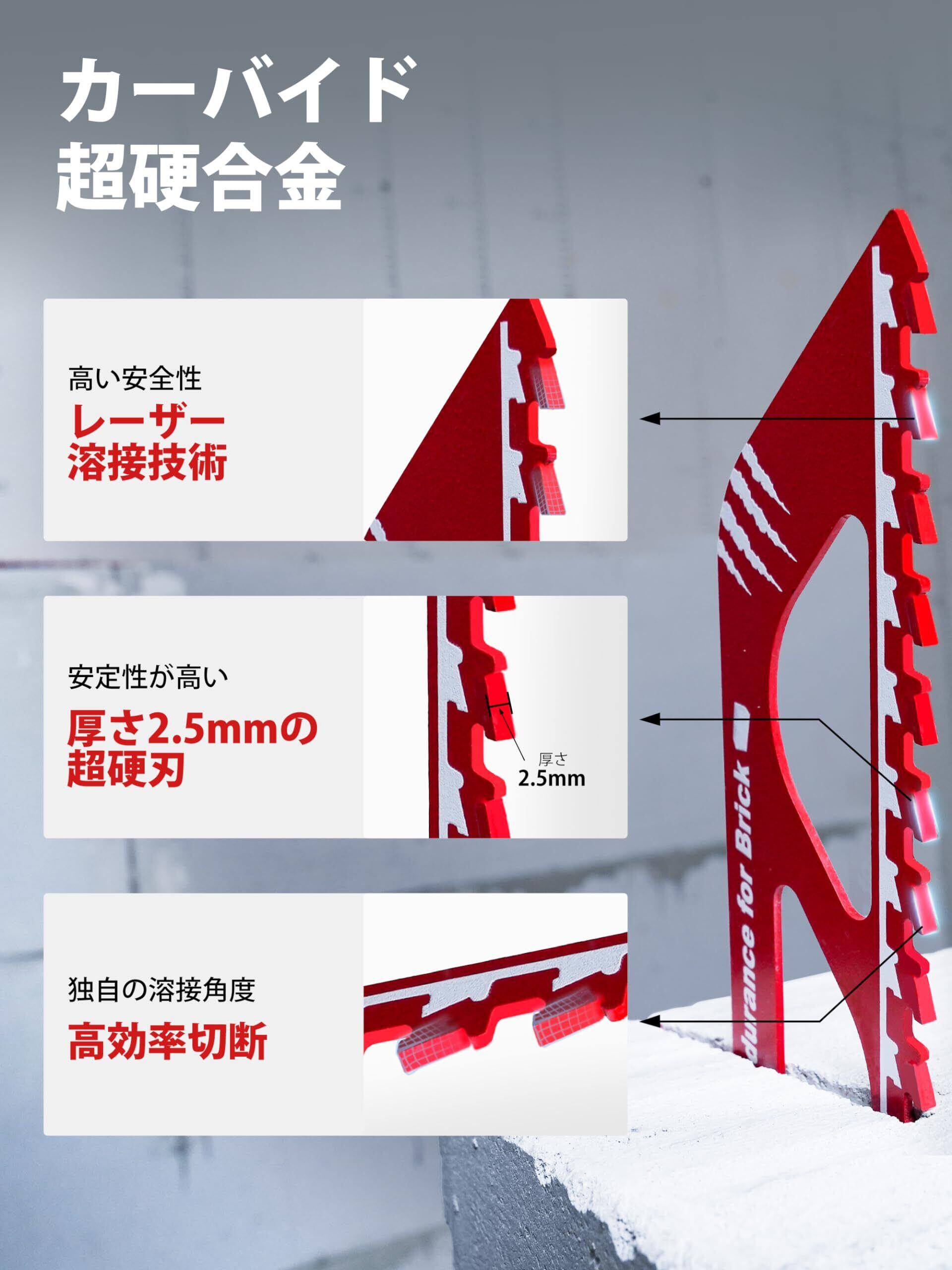 【コンクリート切断】ブレードは2山(1インチ当り)の設計により、気泡コンクリートやモルタルなどの素材に対して効率的に切断ができます。