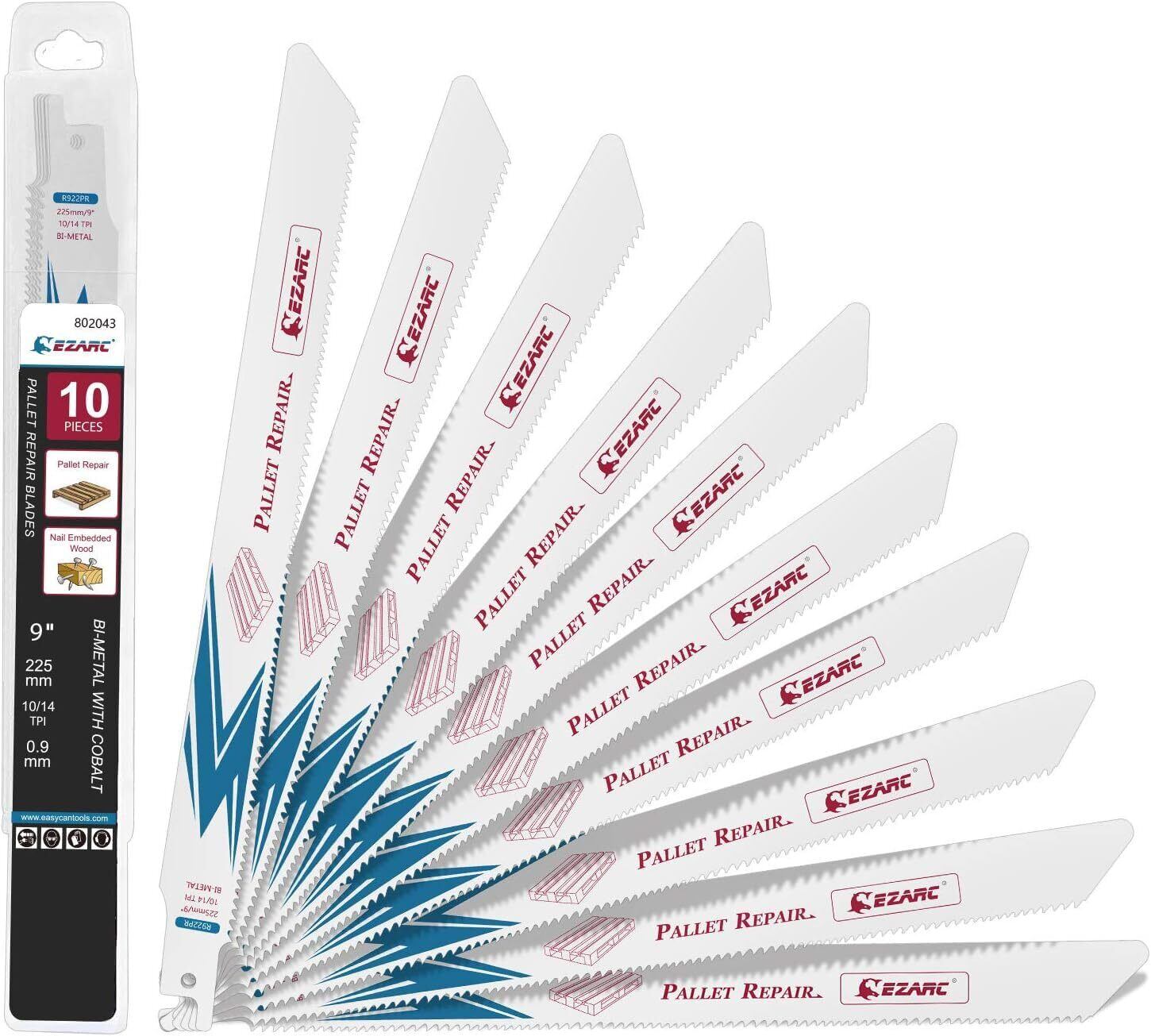 EZARC レシプロソー替刃 重切削 10/14山 225mm バイメタル コバルト 釘の入った木材・パレット 解体用 セーバーソーブレード 10本組 ホワイト
