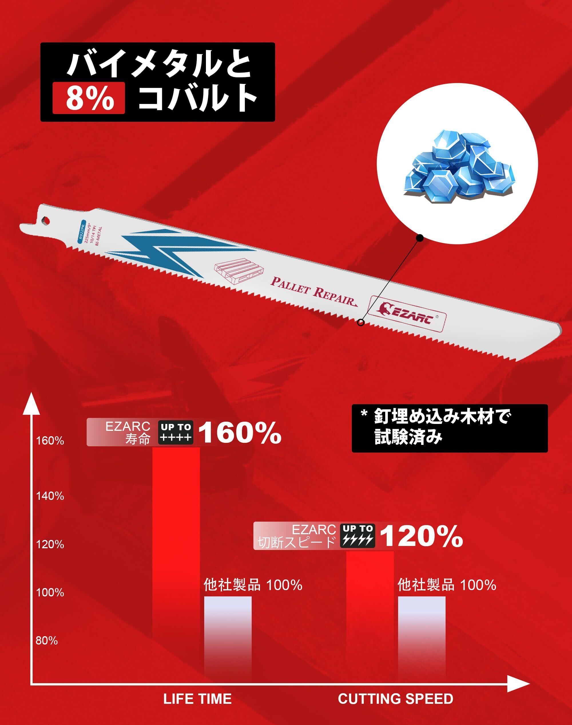 【人気商品】EZARC レシプロソー替刃 重切削 10/14山 225mm バイメタル コバルト 釘の入った木材・パレット 解体用 セーバーソーブレード 10本組 ホワイト