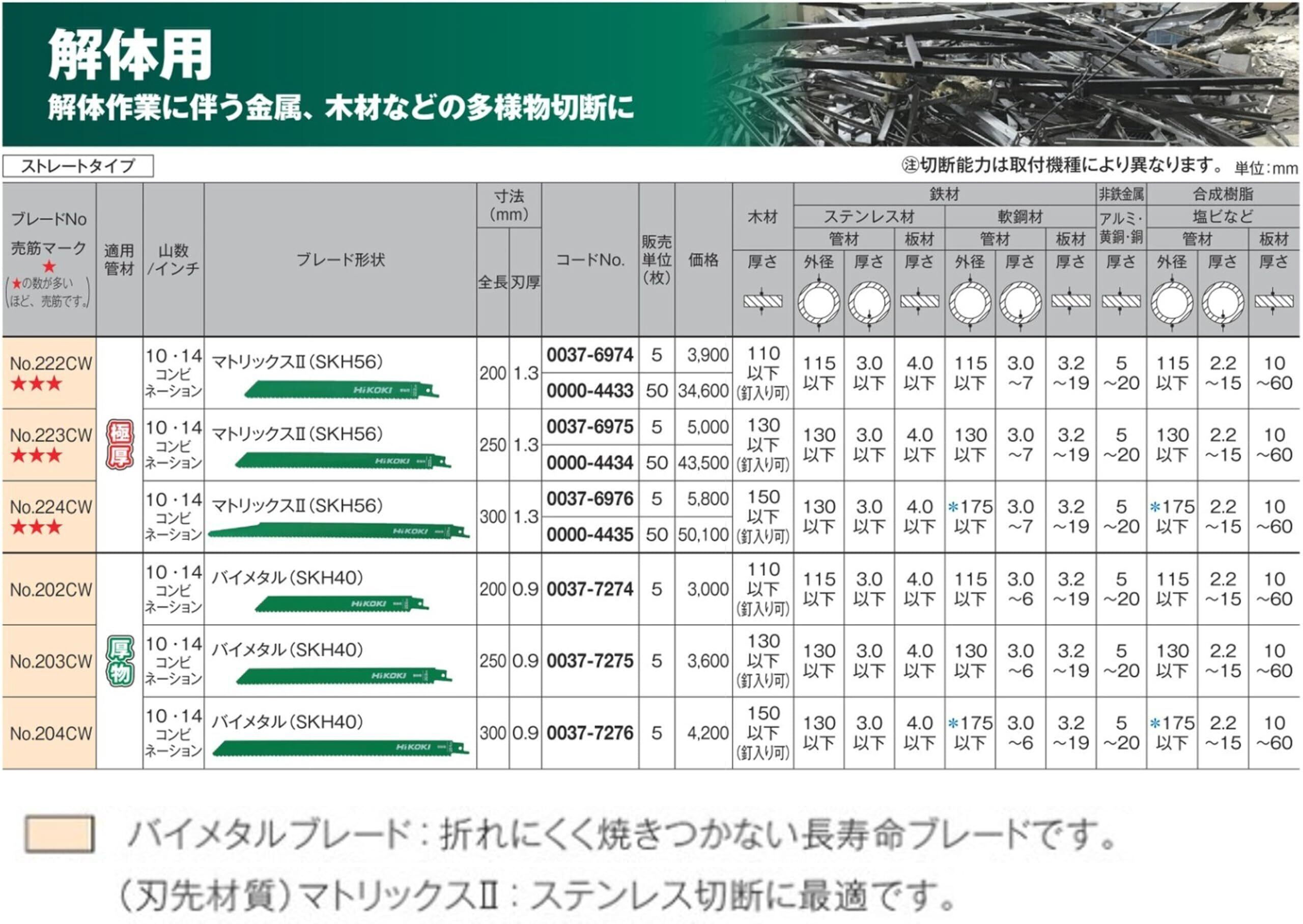 【人気商品】HiKOKI(ハイコーキ) 解体用 セーバーソーブレード レシプロソーブレード 全長250mm 刃厚0.9mm 山数10/14 コンビネーション刃 No.203CW 5枚入り 0037-7275