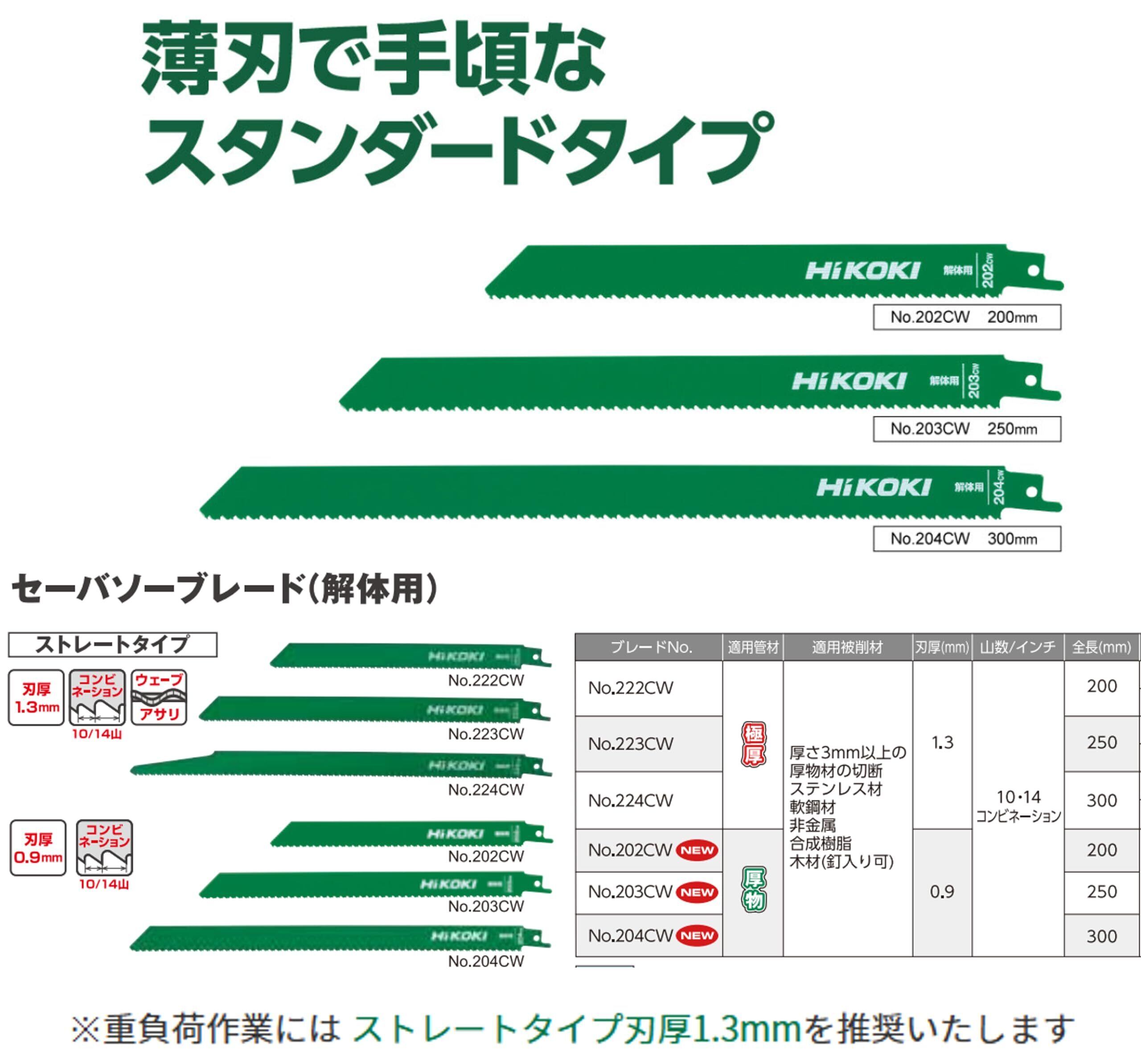 HiKOKI(ハイコーキ) 解体用 セーバーソーブレード レシプロソーブレード 全長250mm 刃厚0.9mm 山数10/14 コンビネーション刃 No.203CW 5枚入り 0037-7275