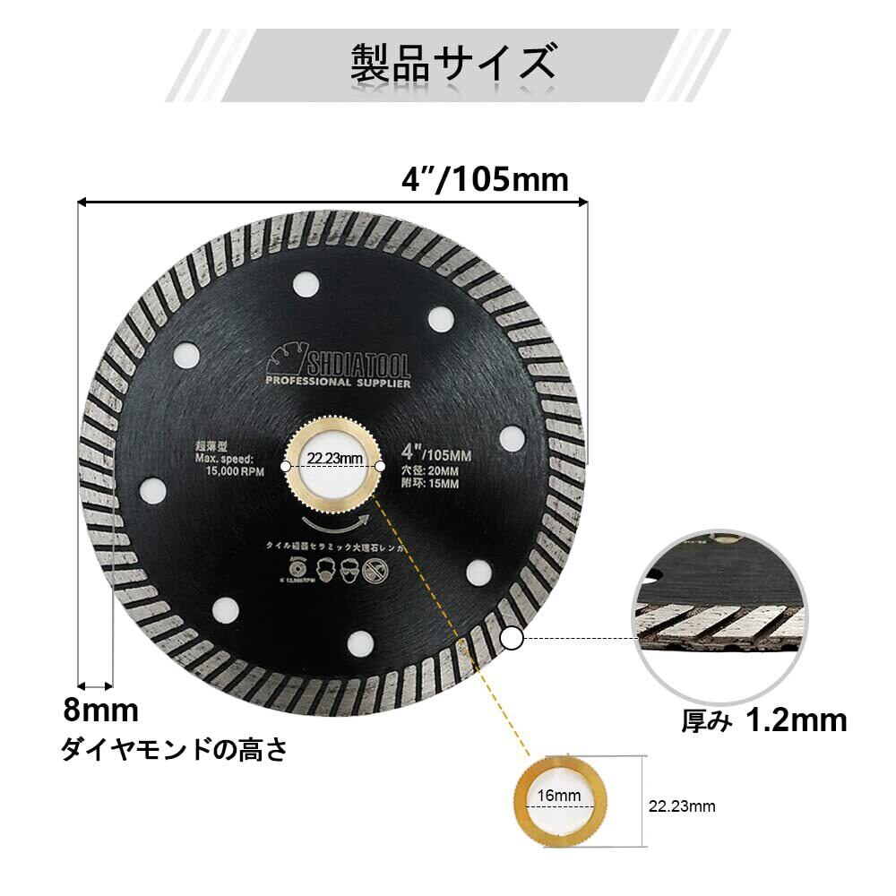 SHDIATOOL ダイヤモンド スーパー シン ブレード 磁器 セラミック タイル用 花崗岩 10PK 径 105MM ターボ 切断 ディスク 105MM