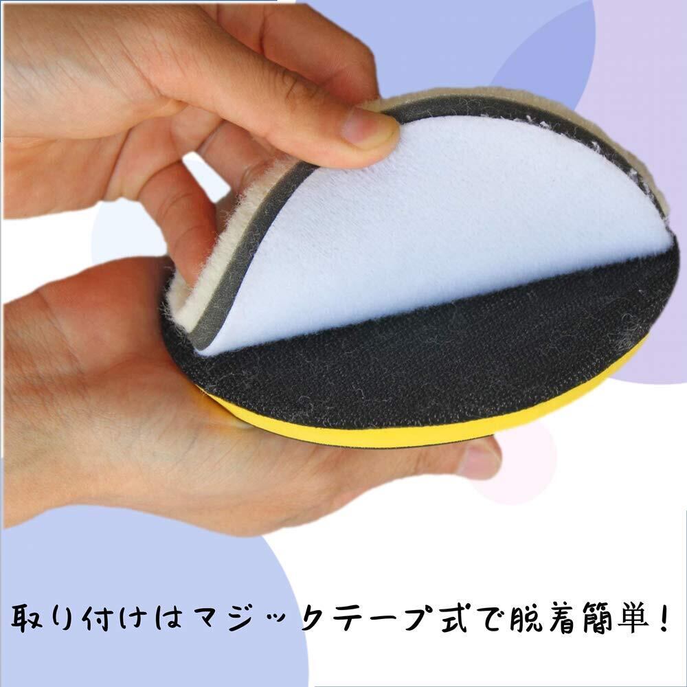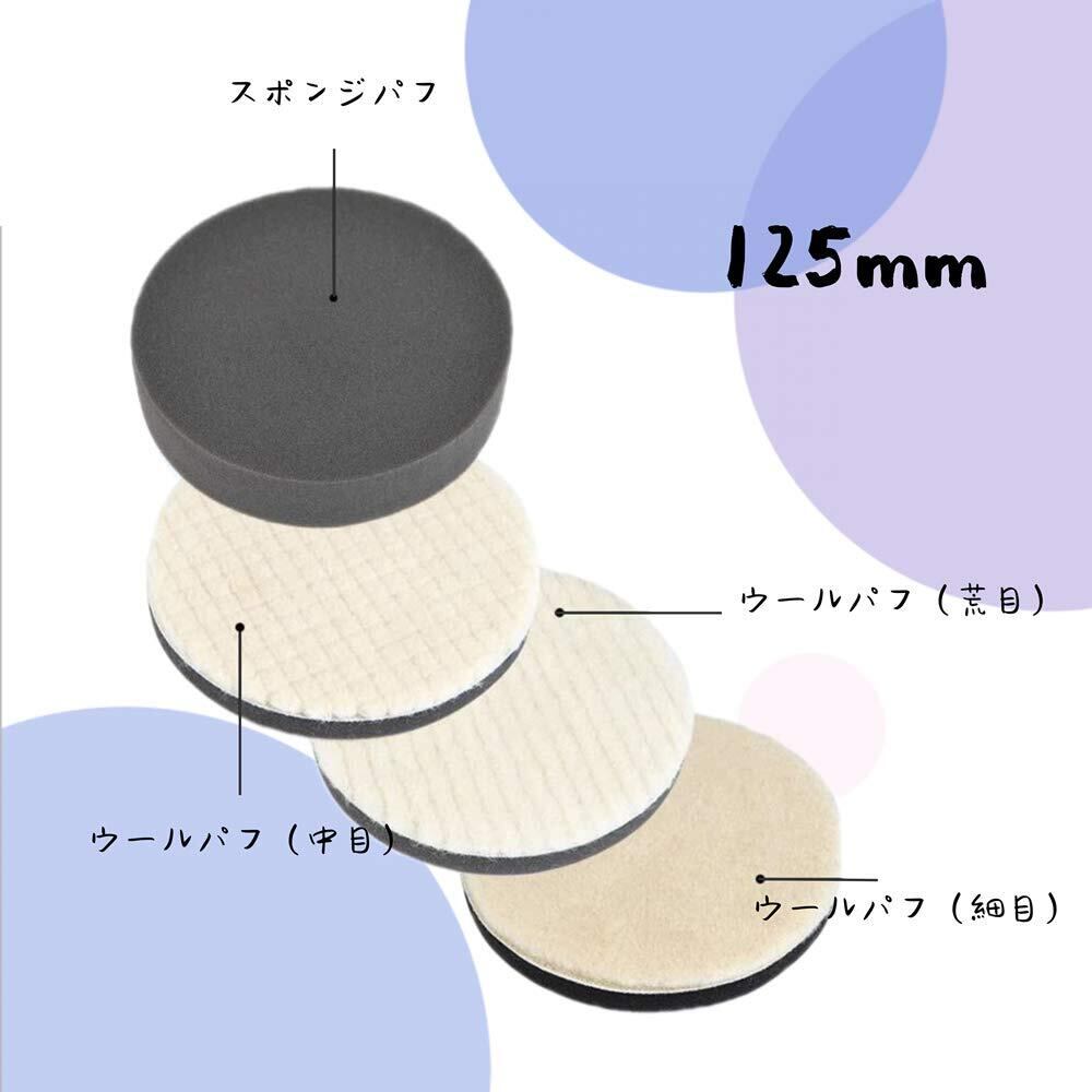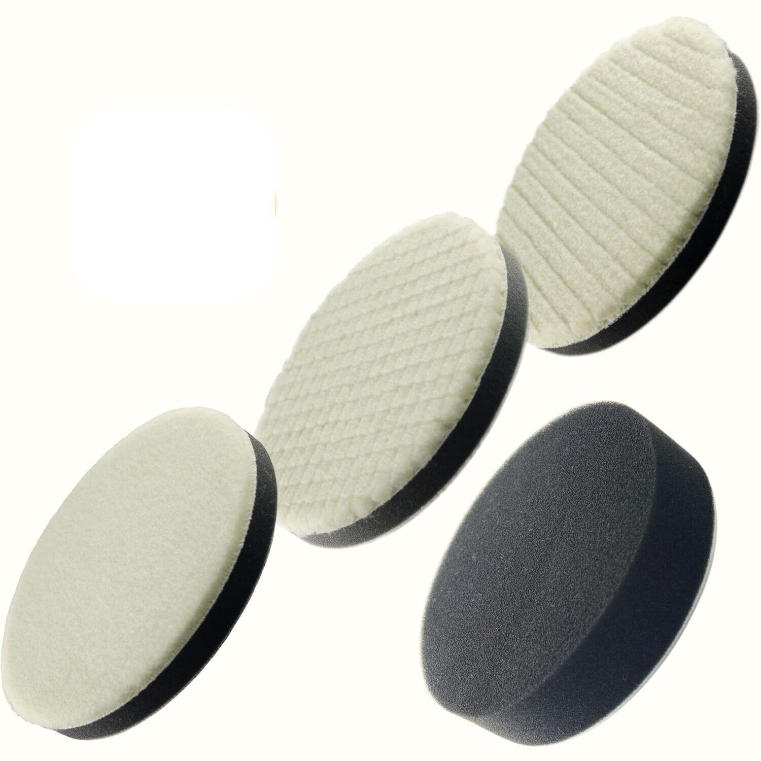 ポリッシャーバフ スポンジバフ 125mm 研磨スポンジ マジックテープ式 (3ウールバフ+1極細スポンジ, 4個セットA)