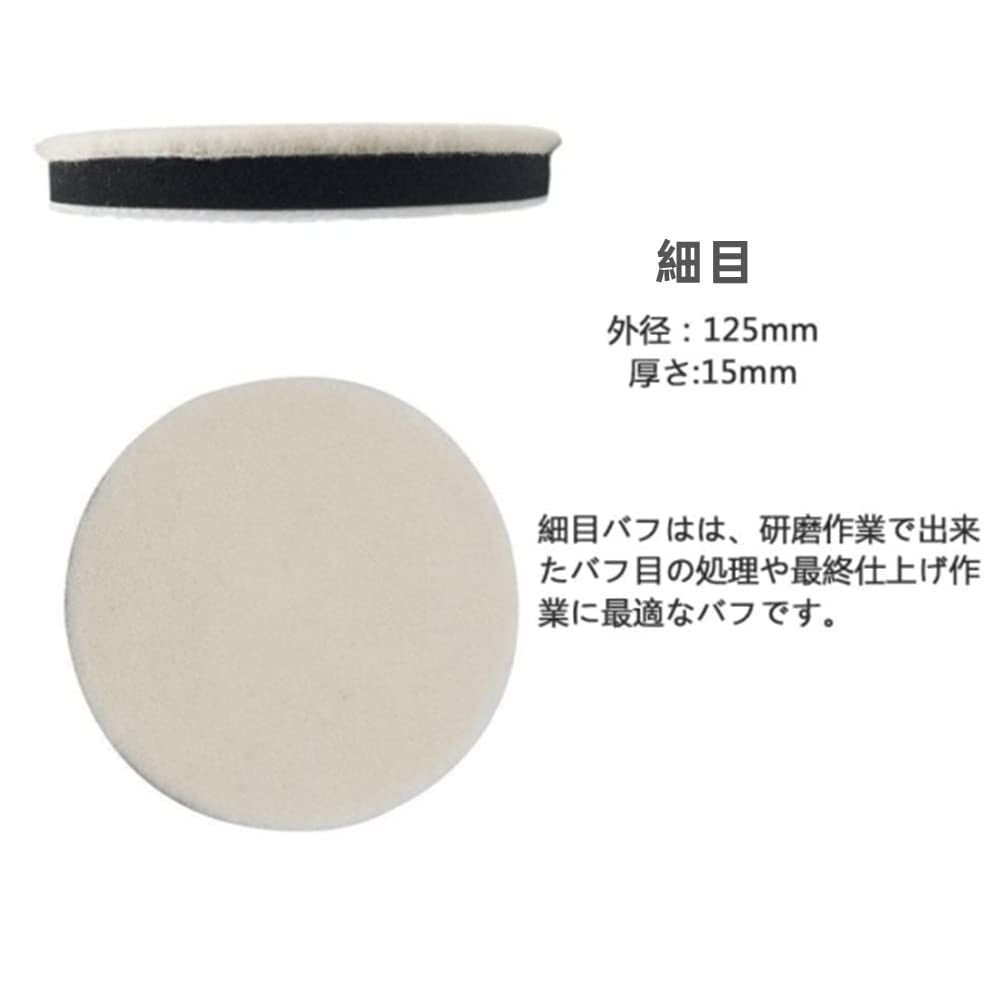 ポリッシャーバフ 6個セット 研磨バフ 125mm 細目 マジックテープ式 車磨き用