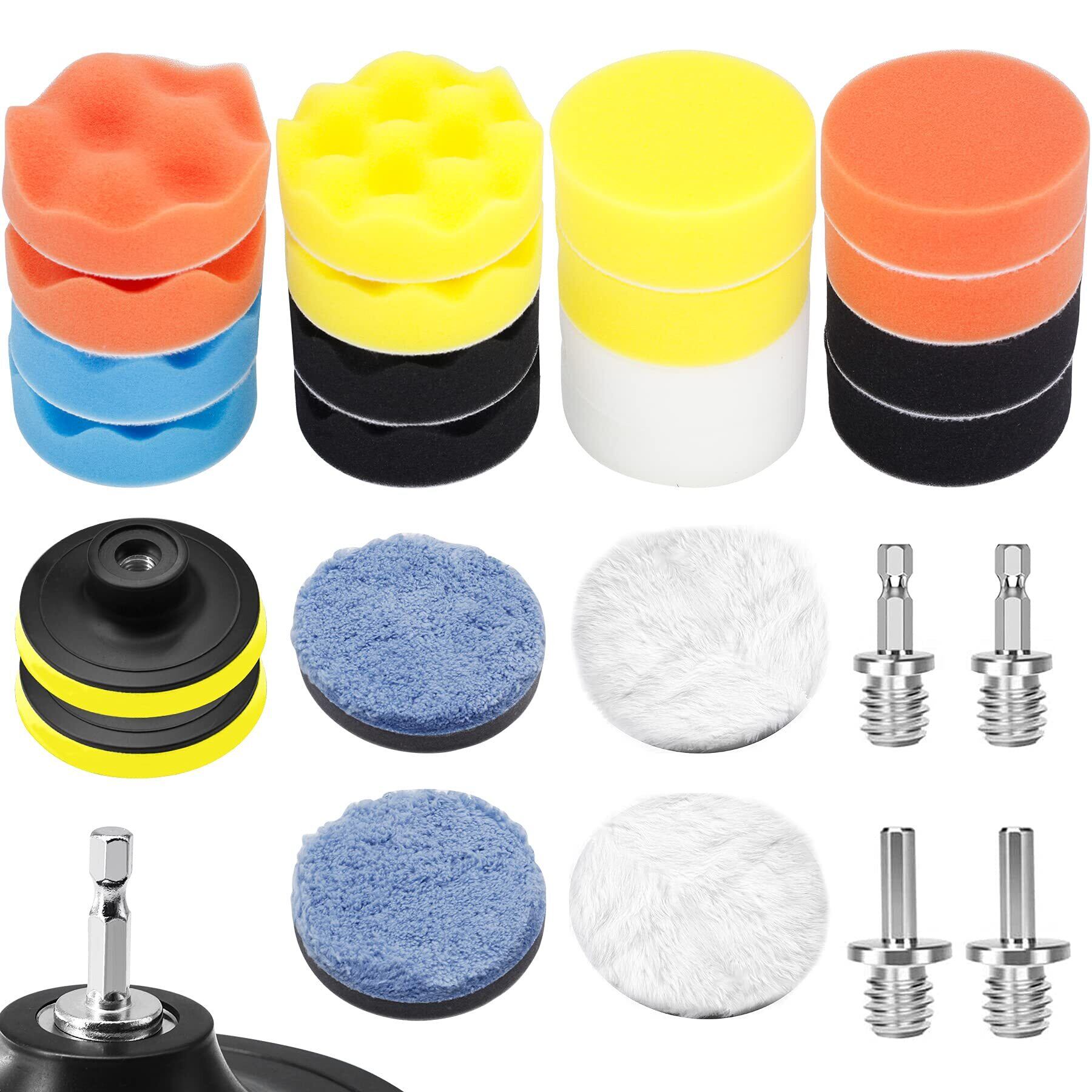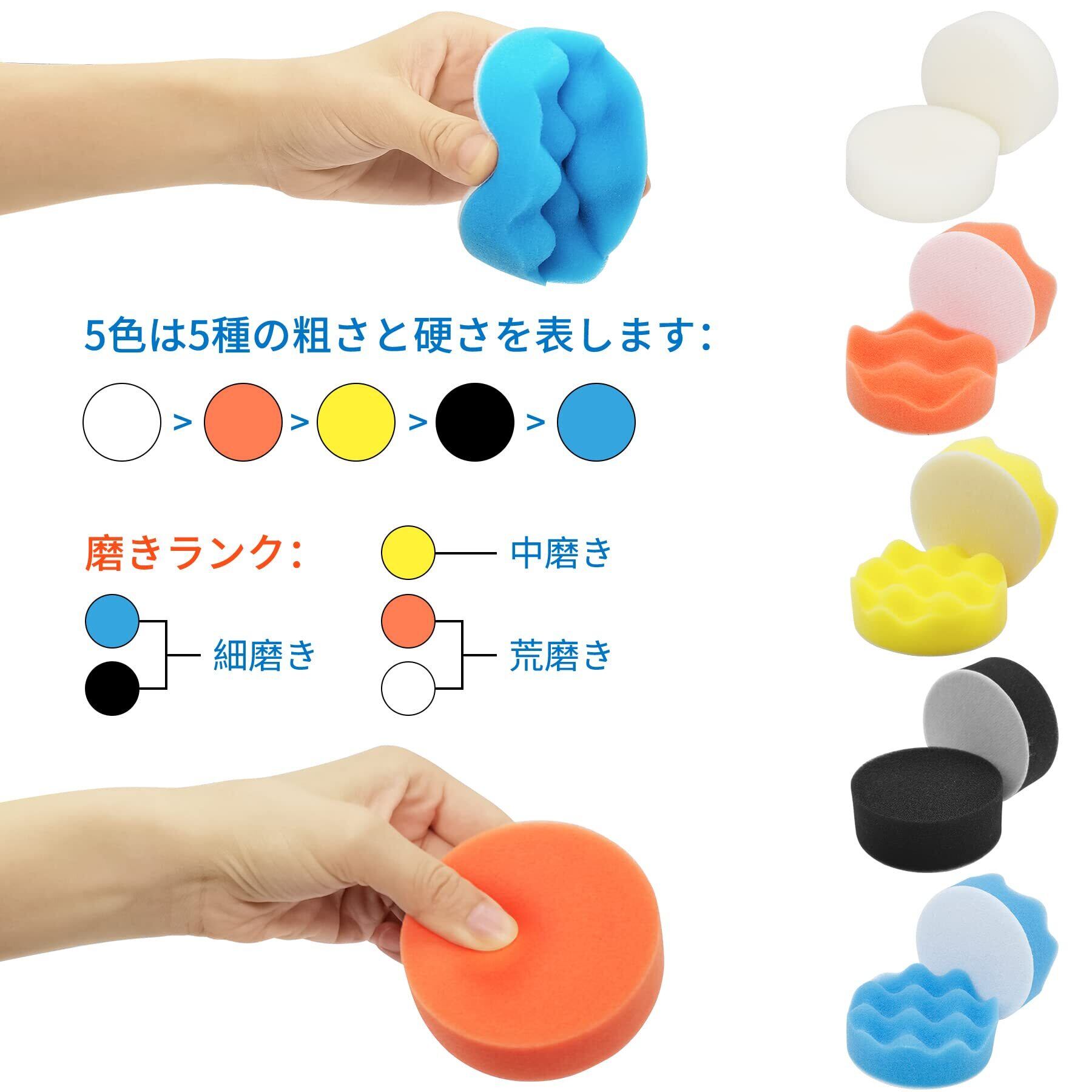 【実用的な研磨セット】さまざまな色のスポンジ研磨パッドは柔らかさが異なり、さまざまな研磨のニーズに対応し、粗い領域と小さな領域に研磨とワックスがけを適用し、効率的な切断と研磨、車の難しい酸化コーティング、傷に適用し、空気式または電気式研磨機で使用できます。