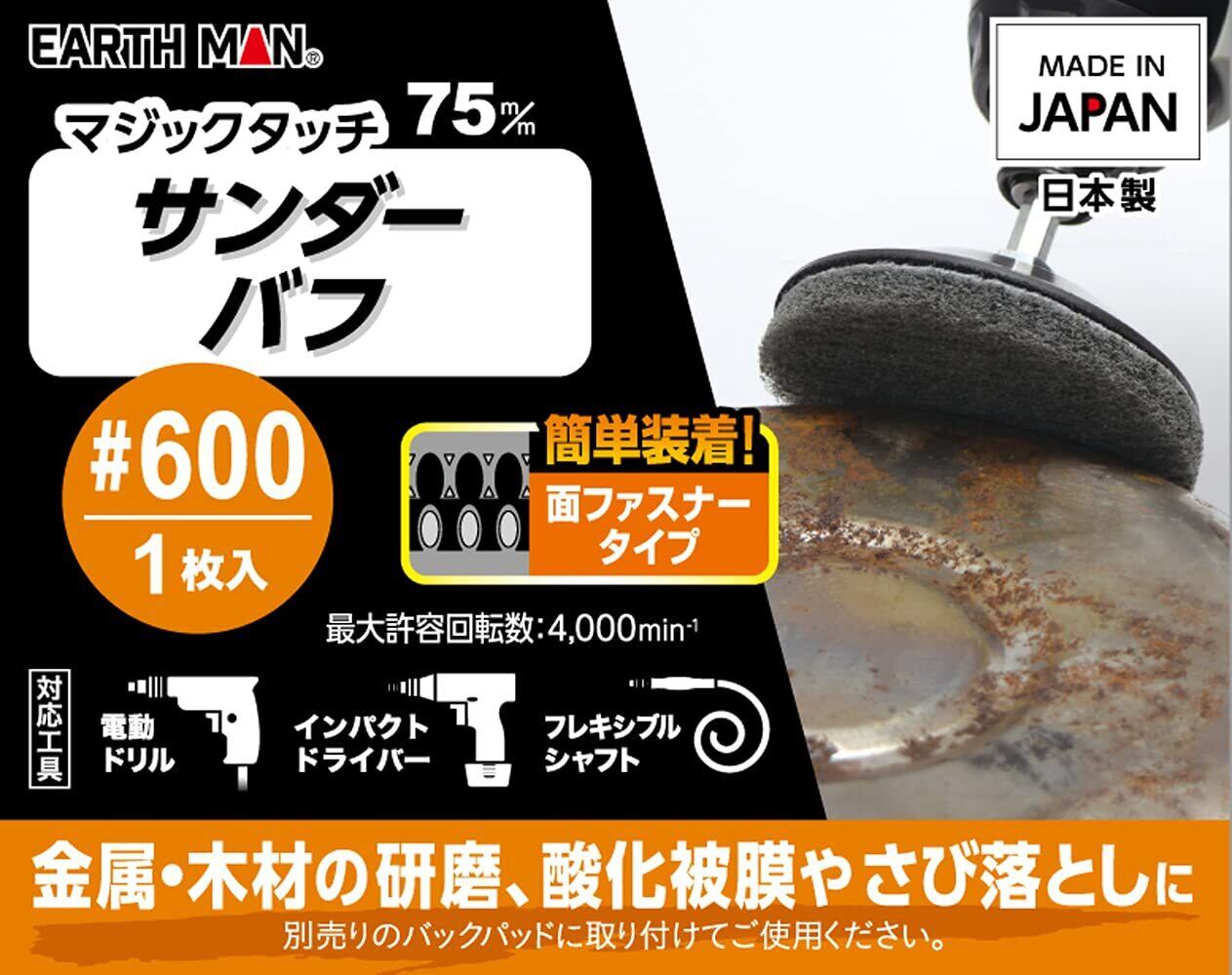 【新着商品】髙儀(Takagi) EARTH MAN マジックタッチ75mm サンダーバフ 金属・木材の研磨、酸化被膜やさび落としに 1枚入 #600