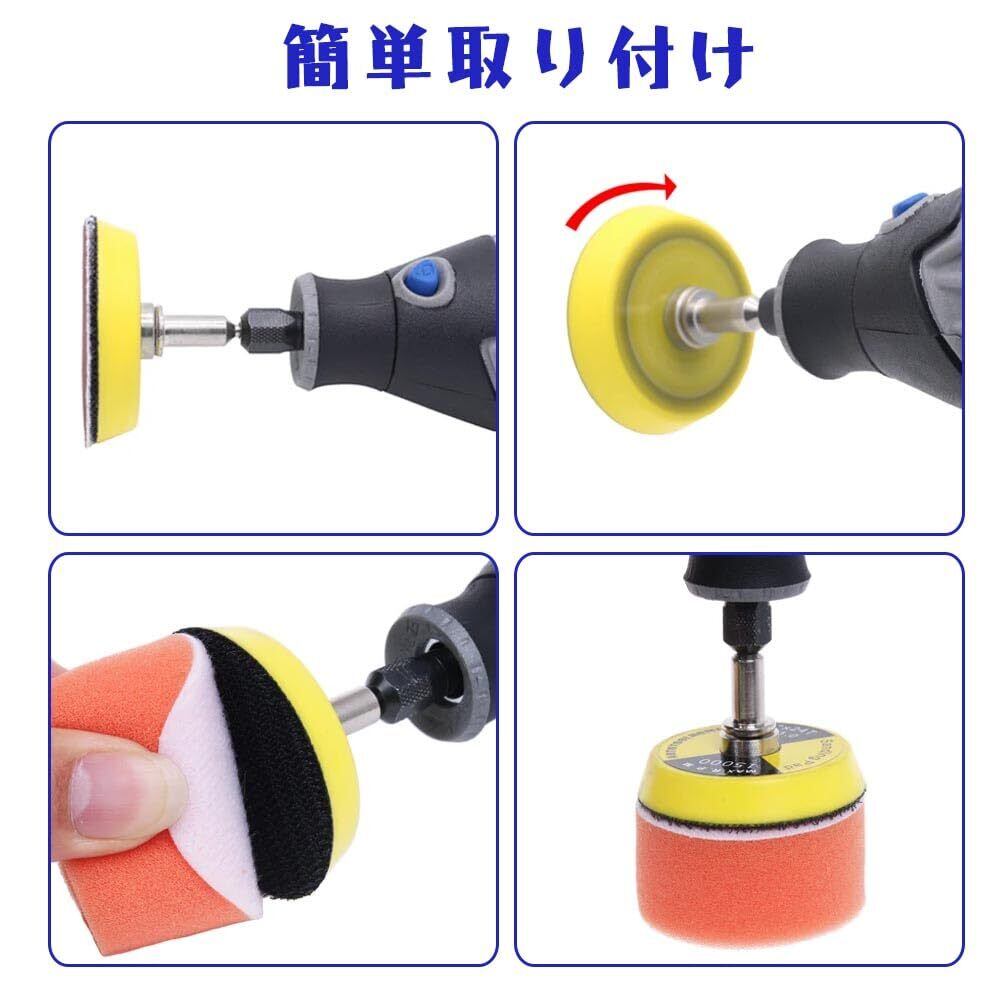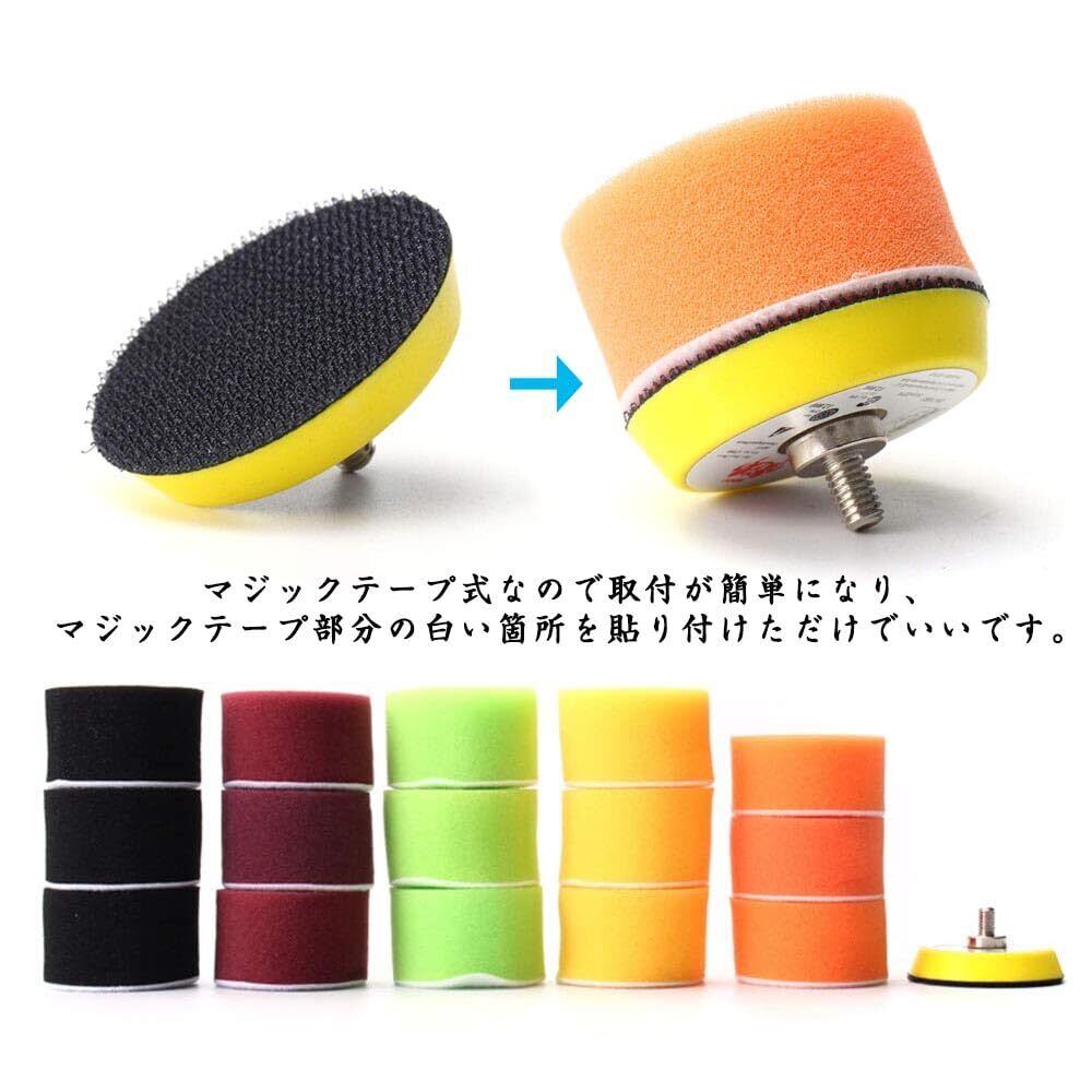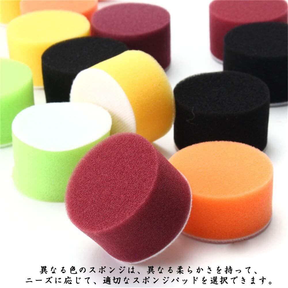 ポリッシャースポンジ 研磨パッドセット スポンジバフ 塗装仕上げ 車磨き 直径50mm 丸形 多色 塗装仕上げ 車磨き ミニポリッシャー 洗車用 電動ポリッシャー用 16点セット