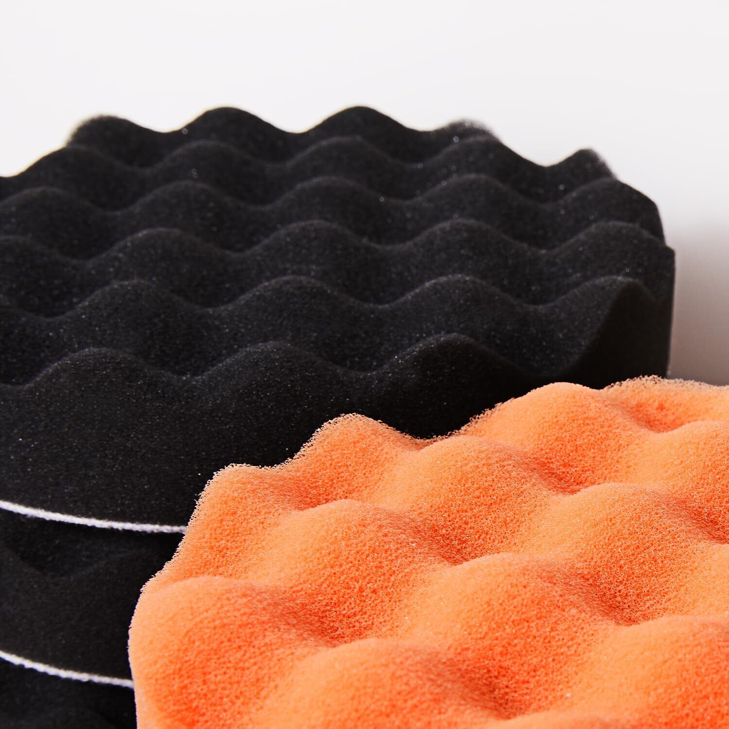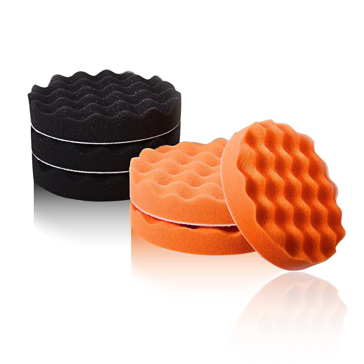 125mm 6個セット 愛車を傷つけない サイズ多種類有り ソフト バフ スポンジ 電動ポリッシャー 洗車 ワックスがけ 研磨 コンパウンド 波型 赤5&黒5セット (6, 125mm)