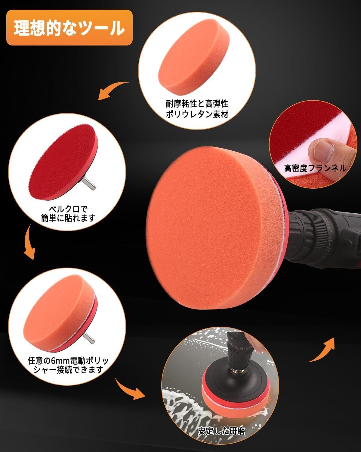 【取り付け簡単】取り付け簡単なマジックテープを採用し、追加工具は必要なく、電動ポリッシャーに装着するだけで、素早く簡単に取り付けることができます