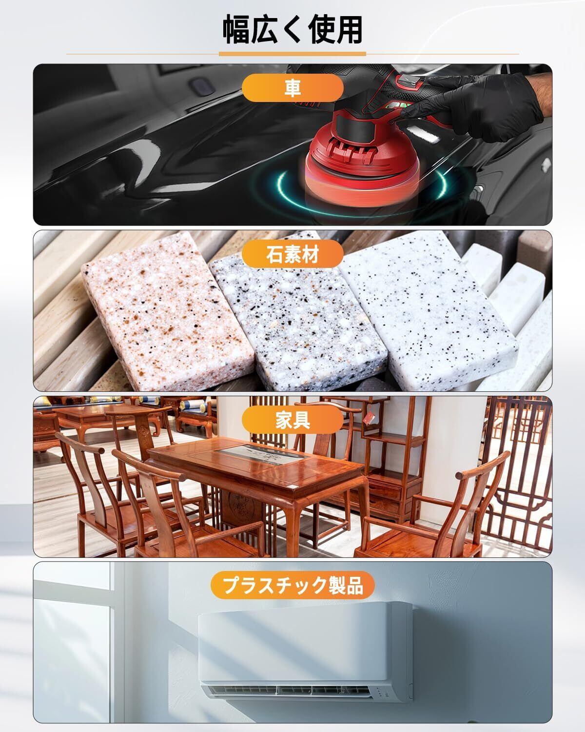 【幅広い用途】車体の研削、研磨、修理、コーティング剤の塗布と拭き取りに適しており、磁器、大理石、ガラスなどのさまざまな素材の研磨にも適しており、多様な加工ニーズを満たし、微細な研磨効果を確保し、汚れを完全に取り除きます
