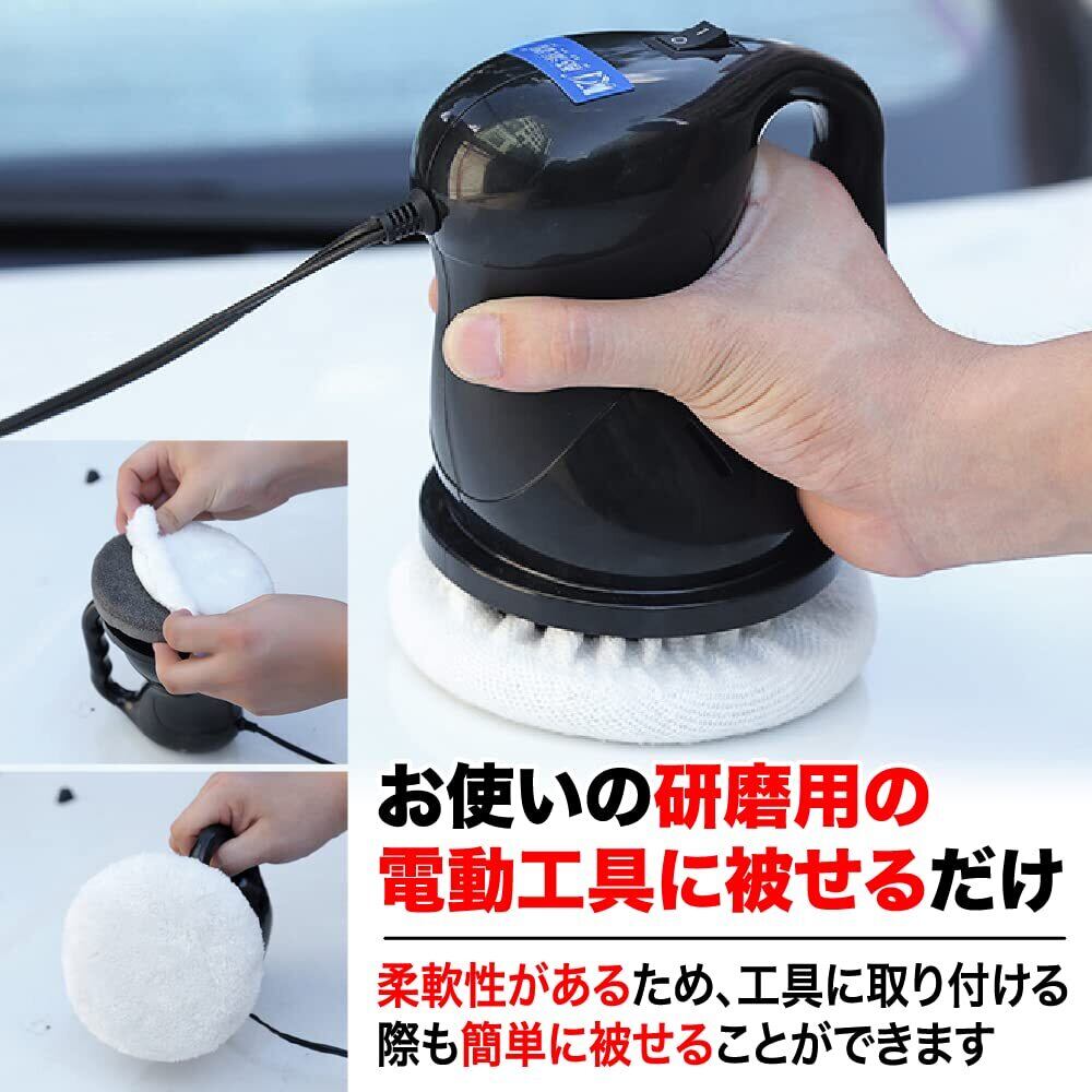 【取り付け簡単】柔軟性があるため、工具に取り付ける際も簡単に被せることができます。ほこりやグリースを除去でき、つや出しやワックスにもお使い頂けます。
