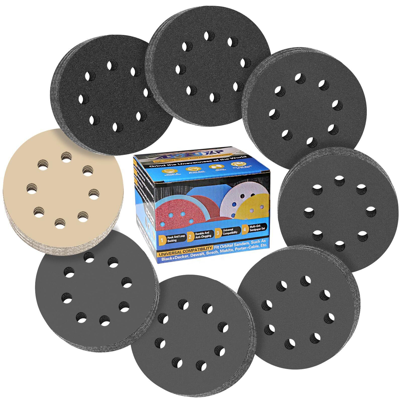 サンディングディスク 125mm 耐水ペーパー 81枚入セット(#240#400#600#800#1000#1500#2000#3000 ×各10枚)丸型 8穴 ディスクペーパー サンダー用サンディングペーパー,ヘッドライトの研磨 木工DIY作業に 金属磨き