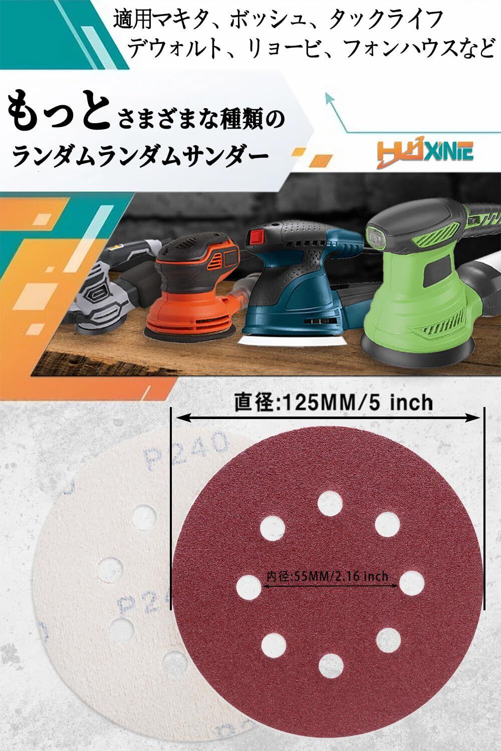 【素材の特徴】ディスクペーパー 125mm径 8穴 丸 高品質の酸化アルミニウムサンディングディスク、特殊な熱処理、頑丈で耐久性があり、さまざまな素材の研削と研磨に適しています、直径125mm / 8つの集塵穴、ベルクロスタイルのサンドペーパー、使いやすい