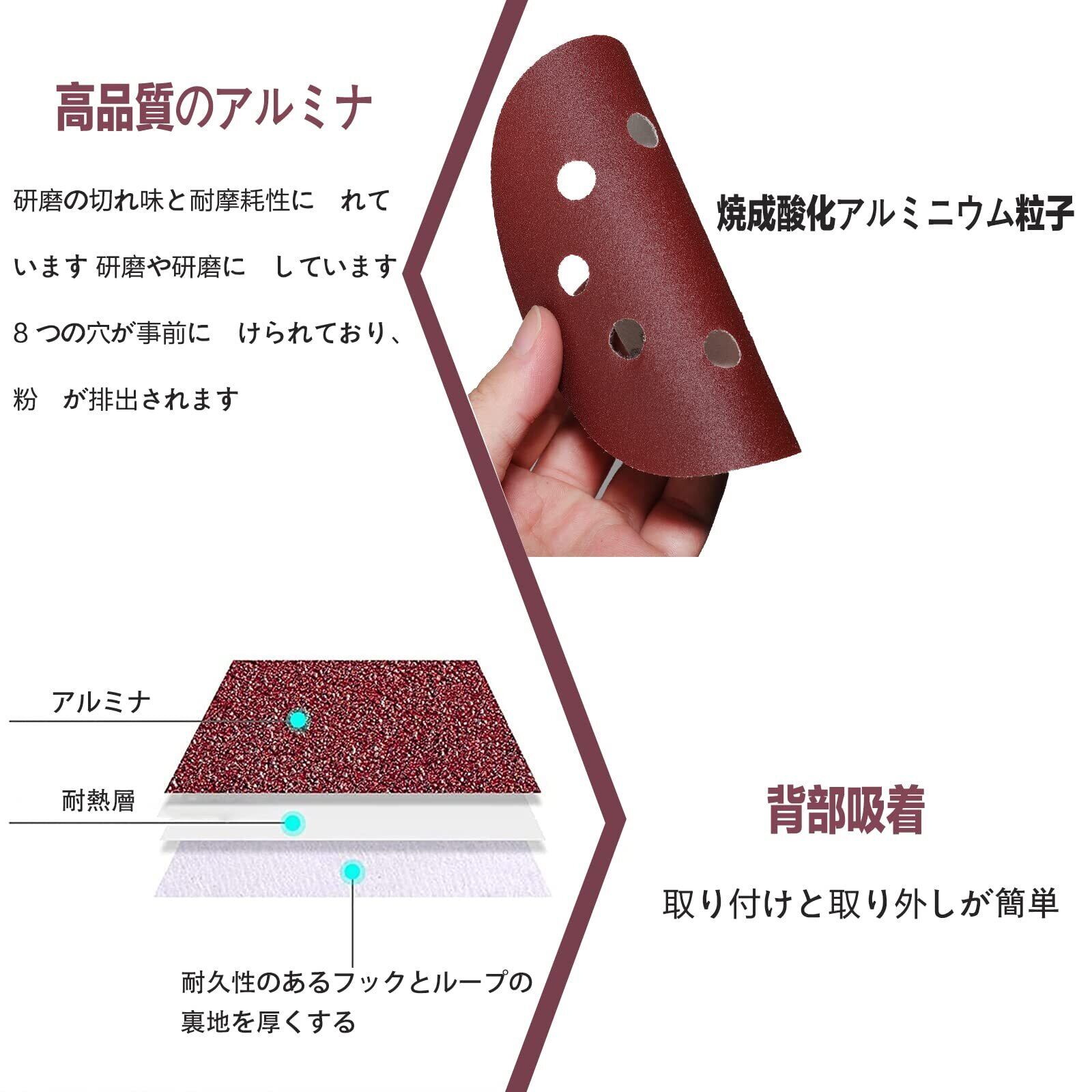 サンディングディスク 高速のあるサンディング、優れた切断力を提供し、作業時間を削減し。サンドペーパー電動は耐久性があり、耐用年数が長い。紙やすりサンドペーパーの裏面にはサンドペーパーのサイズが印刷されており、識別しやすい。