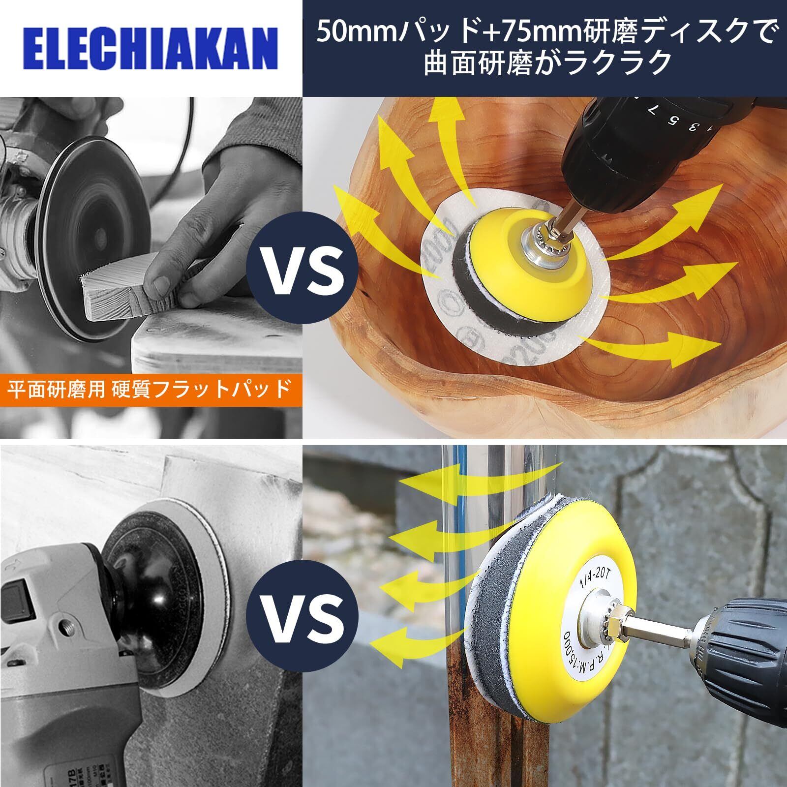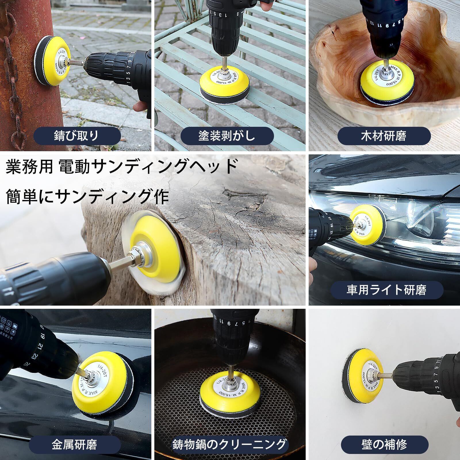 高品質アルミナ砥粒採用の研磨パッドで: スピーディーな切削と滑らかな仕上げを実現 は高純度酸化アルミニウムを使用しており、木材・金属・プラスチックなど様々な素材に最適。ほとんどの電動工具(電動ドライバーおすすめ/充電式電動ドライバー、ダイグラインダー、その他ロータリーツール)に簡単装着可能なクイックチェンジ設計で、作業効率が大幅アップ!DIYからプロユースまで幅広く対応します