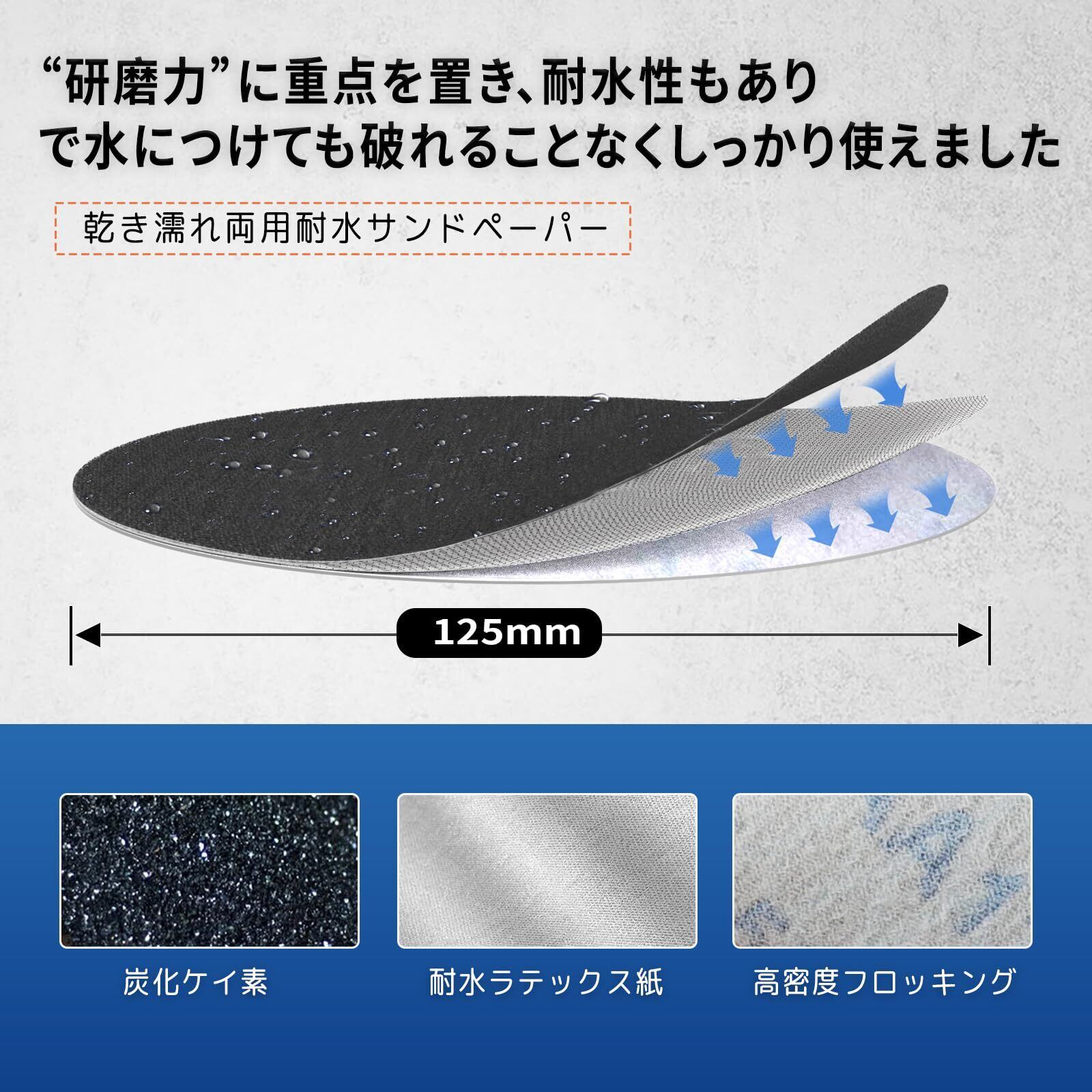 【限定セール】耐水ペーパー セット 125mm サンディングディスク #120~3000番 9種類45枚入 ランダムサンダー ペーパー マジック式 ディスクペーパー 无穴 丸型,ヘッドライトの研磨 木工DIY作業に 金属磨き(#120#240#400#600#800#1000#1500#2000#3000 ×各5枚)付属 曲⾯⽤アダプター×1