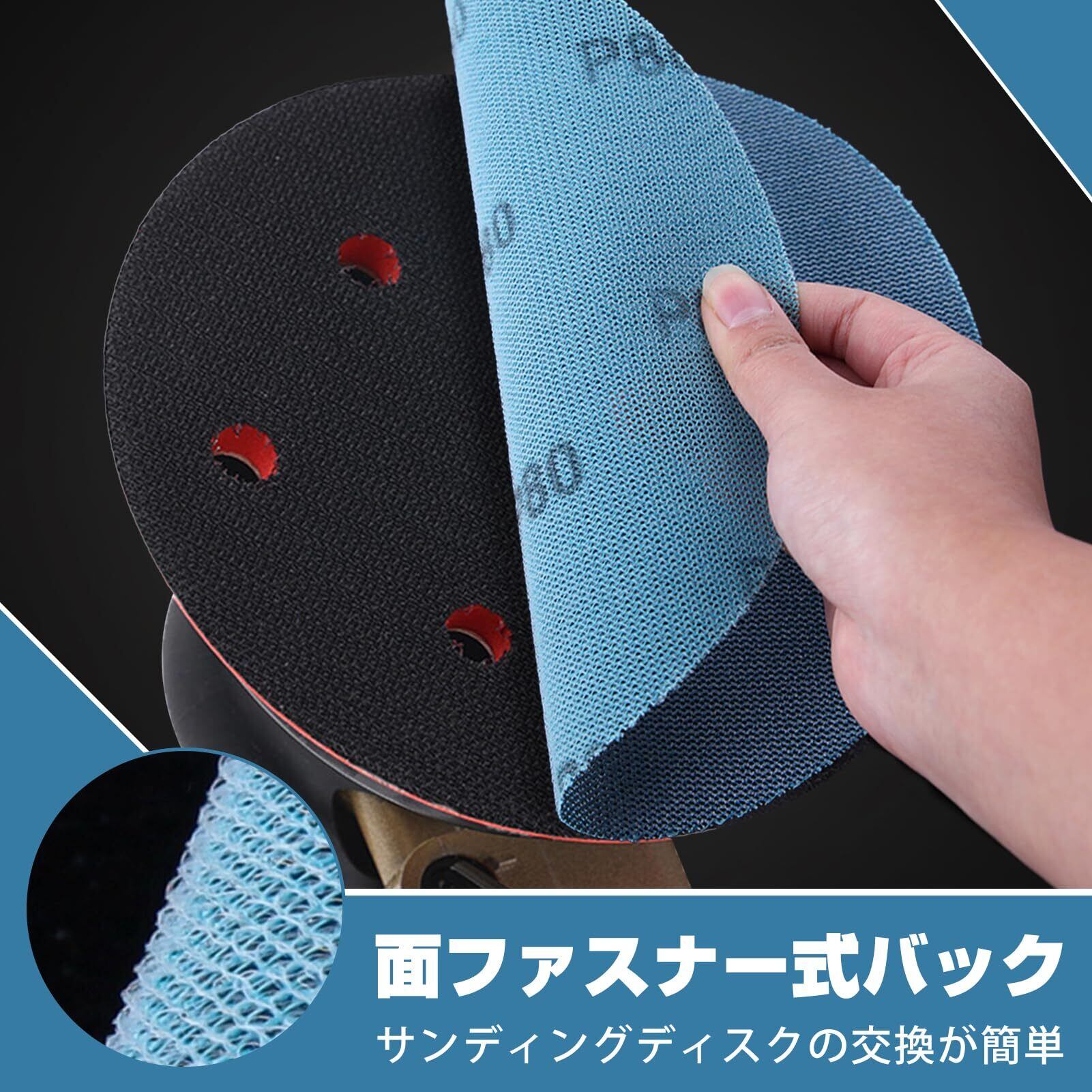 【特徴】面ファスナー式のバックプレートを採用し、サンドペーパーディスクの交換が素早く簡単に行え、時間と労力を節約します。 ランダムオービタルサンダーやハンドサンディングに最適です。