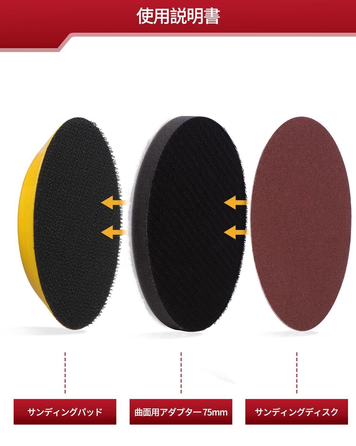ランダムサンダー パッド、曲面研磨アダプター 75mm 4個セット マジック式 耐衝撃性,ランダムサンダー専用クッションパッド 凹凸のある面 を研磨には最適