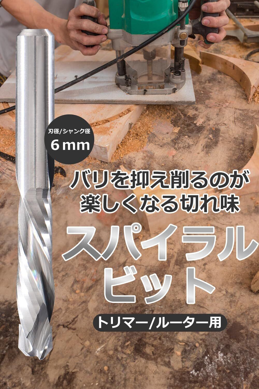 【2025最新】トリマービット スパイラル ルータービット 6mm×25mm 「削るのが楽しくなる切れ味/専用ケース付」【emrina(イムリナ)】