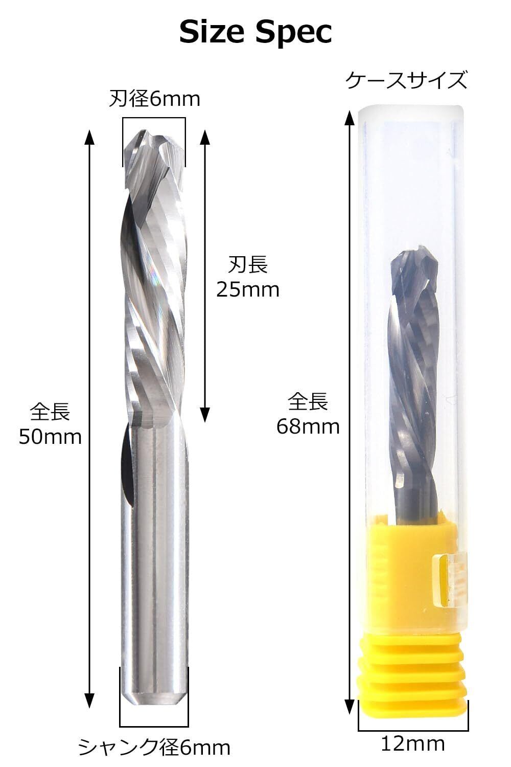 サイズ:全長50mm、刃長25mm、刃径/シャンク径6mm