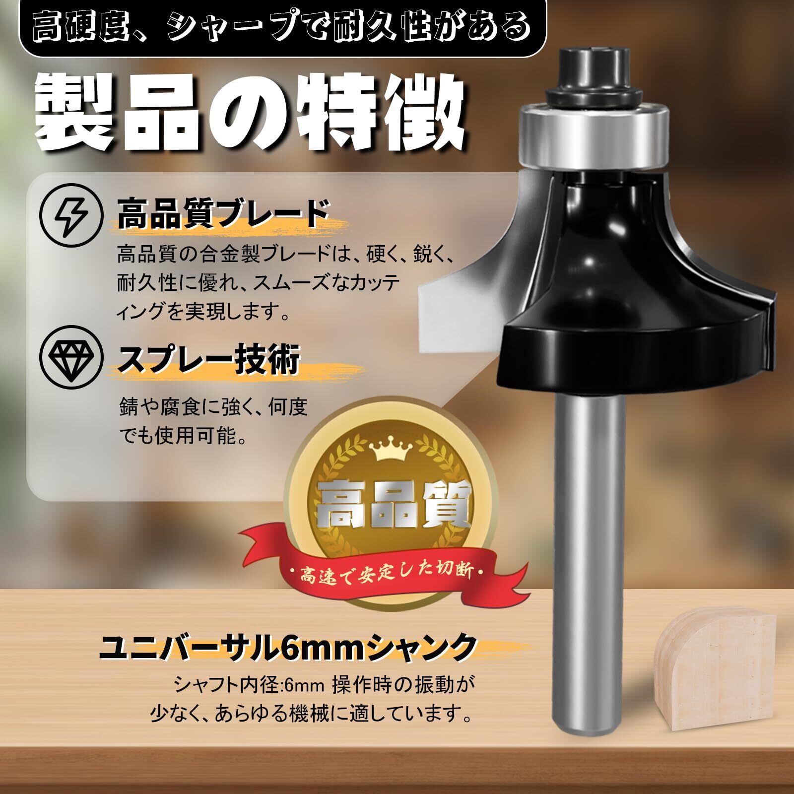 4本コロ付丸面ビット マキタ トリマー用 ベアリング付き (丸面仕上げ対応 6mm軸)木工 DIY 仕上げ用 ルータービット 高精度 滑らかな丸面加工