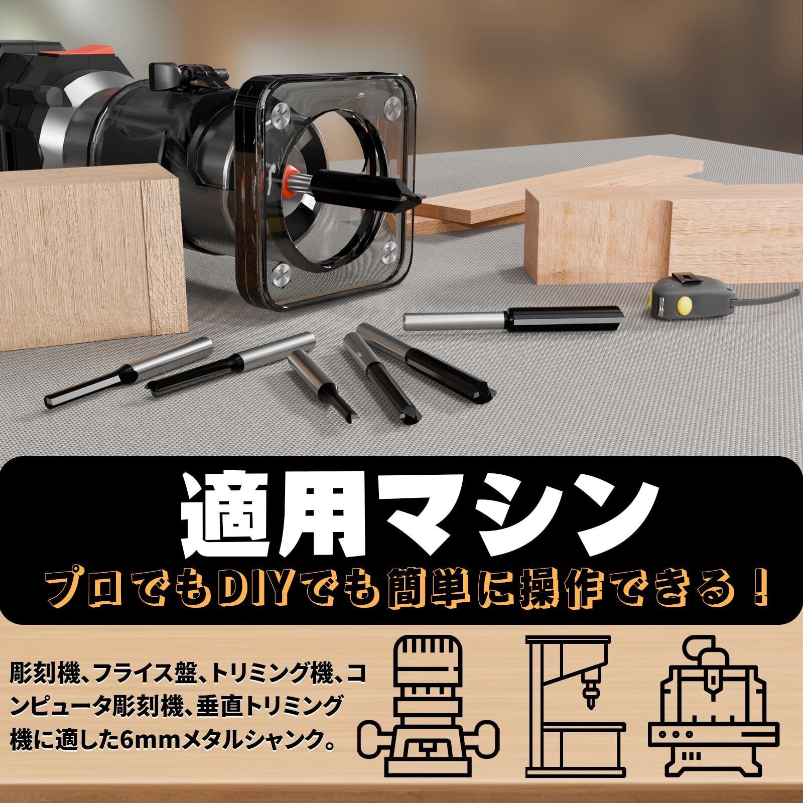 7本入り超硬刃トリマービットストレートビットトリミングハンドル 6mm軸 ルーターセット 木材切断用 木工切削工具 木工フライスカッター 木材切断・彫刻・切削 DIY プロ仕様