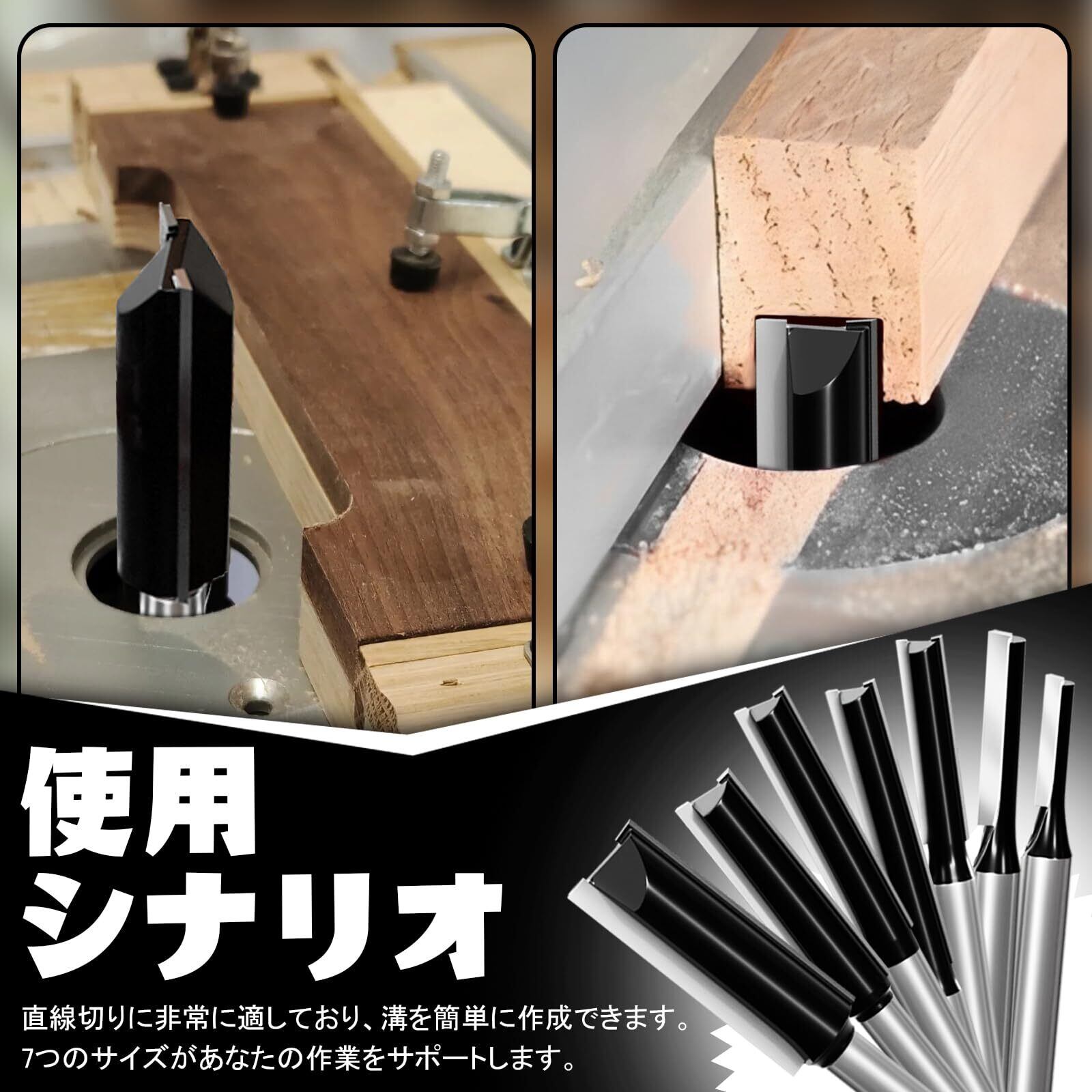 【用途】7本の多様なビットで幅広い加工が可能ストレートカット、溝掘り、面取りなど、様々な木工作業に対応する豊富なビットセット。