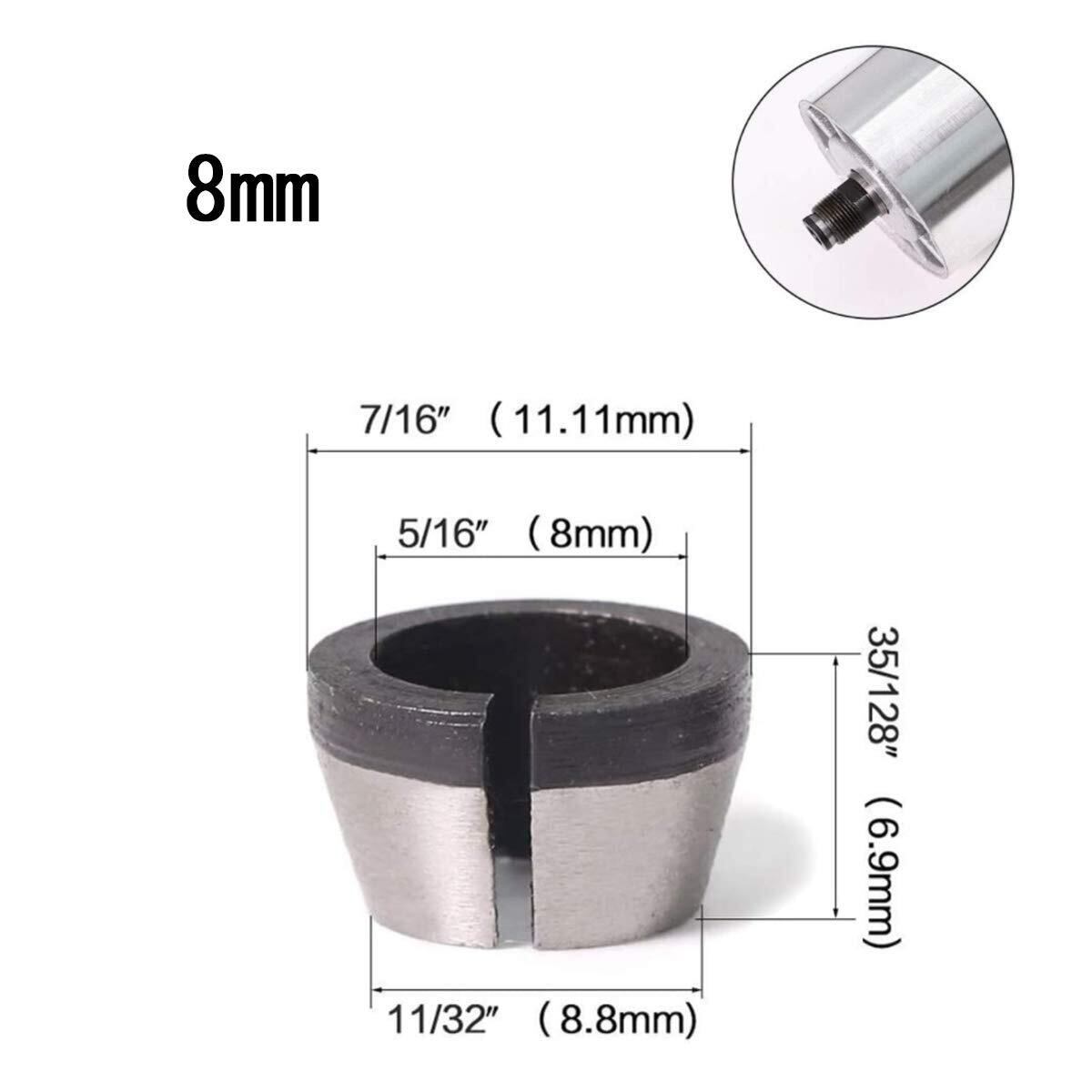 YFFSFDC トリマー用 コレットチャック 1/4インチ 6mm 6.35mm 8mm 3本セット アクセサリ DIY 工具 電動工具 トリマーアクセサリ