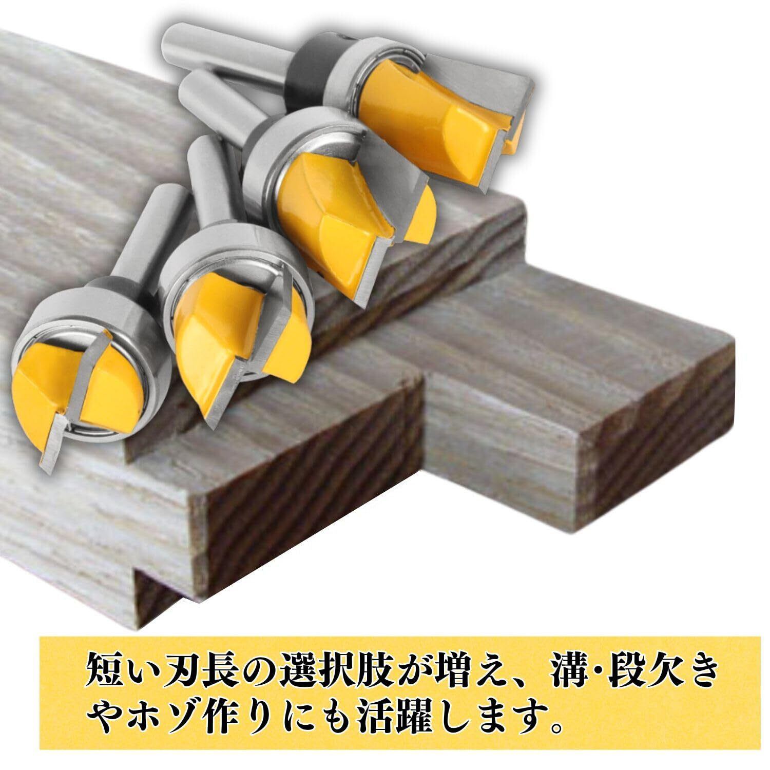コロ付 : 4本ともベアリング(コロ付)付きですので、テンプレートを使用した「ならい加工」で効率的に 浅彫り 浅堀り 溝欠き 段欠き ほぞ加工 などが可能。