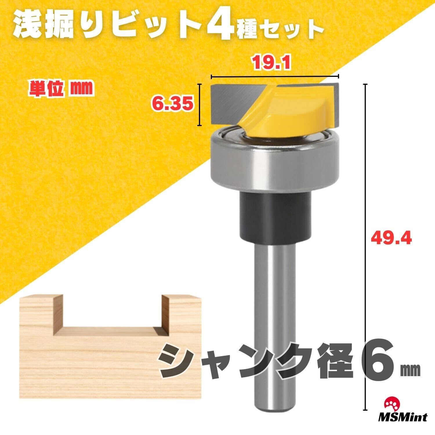【新着商品】MSMint ルータービット トリマービット 6㎜軸 浅彫り ほぞ ホゾ 段欠き(浅彫りビット 4本セット)