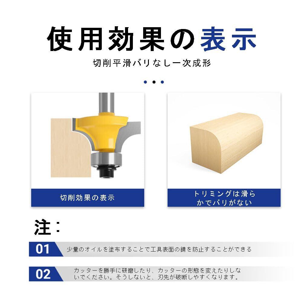 【切削なめらか】独特な工芸で制造して、刃部の線がスムーズで、一度切削すると成形して、木材の丸めや逆R角の切断用に設計されており、スムーズで正確な結果が得られます、プロのような仕上がりになります。
