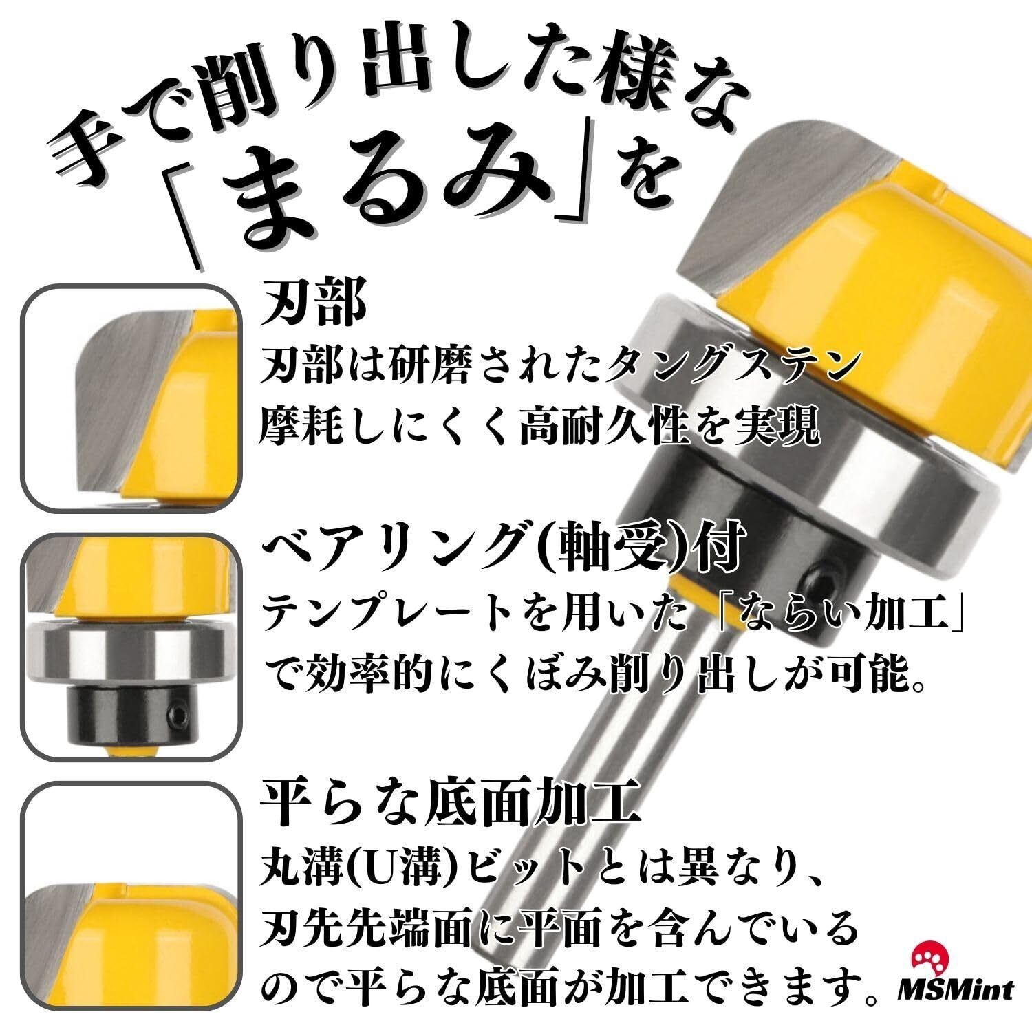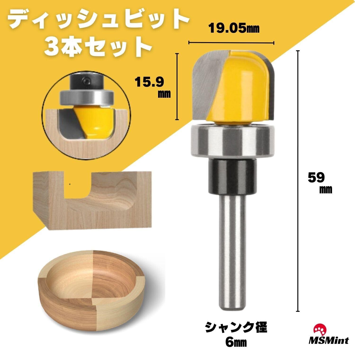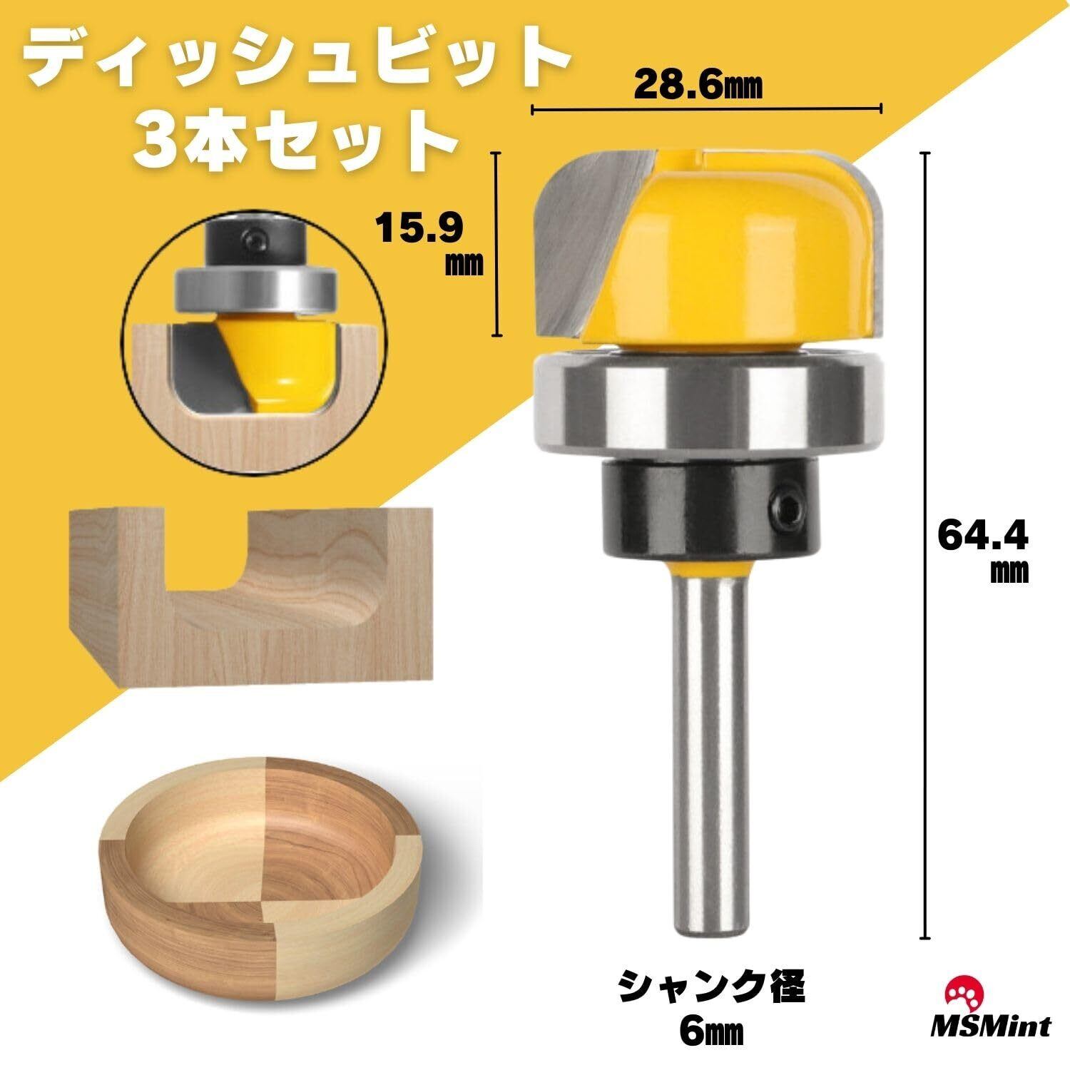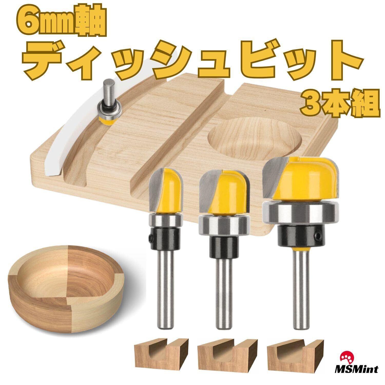 【在庫限り】MSMint トリマービット ルータービット 6㎜軸 木工 コロ付 丸溝ビット U溝ビット 皿 トレイ (ディッシュビット 3本セット)