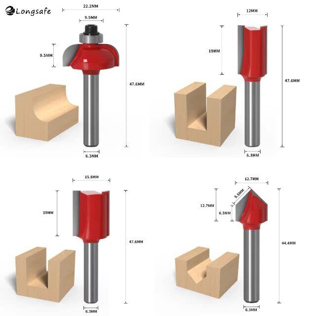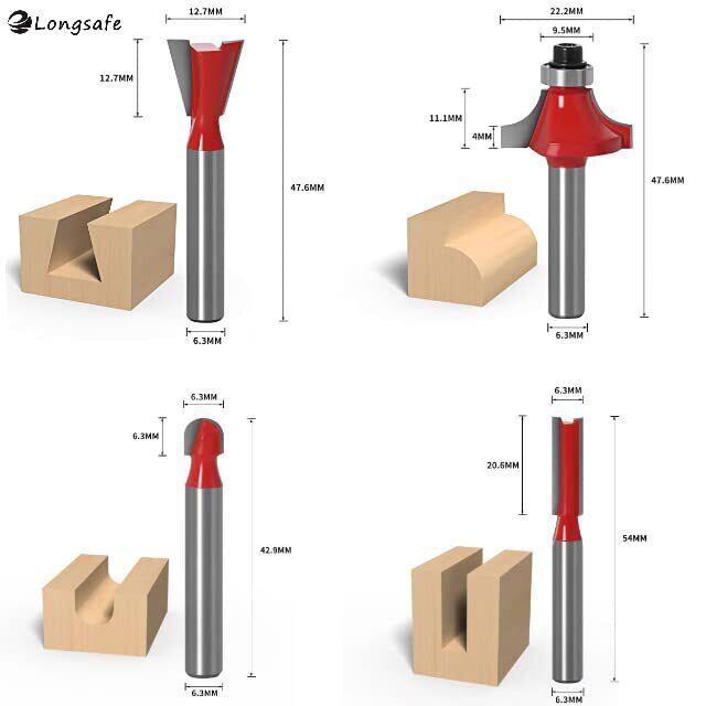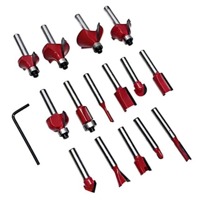 マキタ互換品 ハイコーキ互換 トリマー ルーター ビット 汎用セット 超硬刃 工具 電動工具 溝掘り 飾り 面取り 切り抜き 溝切 DIY ビット径 6.35mm 1/4インチ 15種セット TRB1501-RD (レッド, 6.35mmビット15種セット)