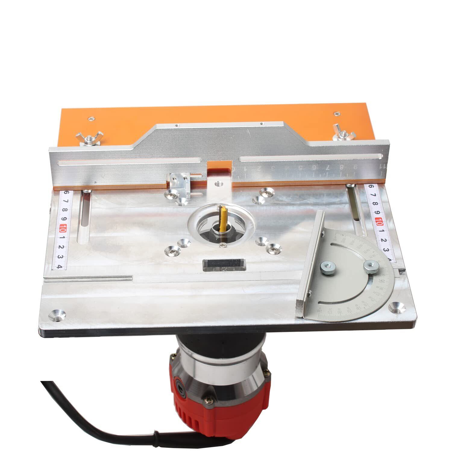 ルーターテーブルセット アルミ製 インサートプレート 0-180度角度器 プッシュブロック付き 3点セット DIY木工 ほぞつぎ 溝切り 面取り加工