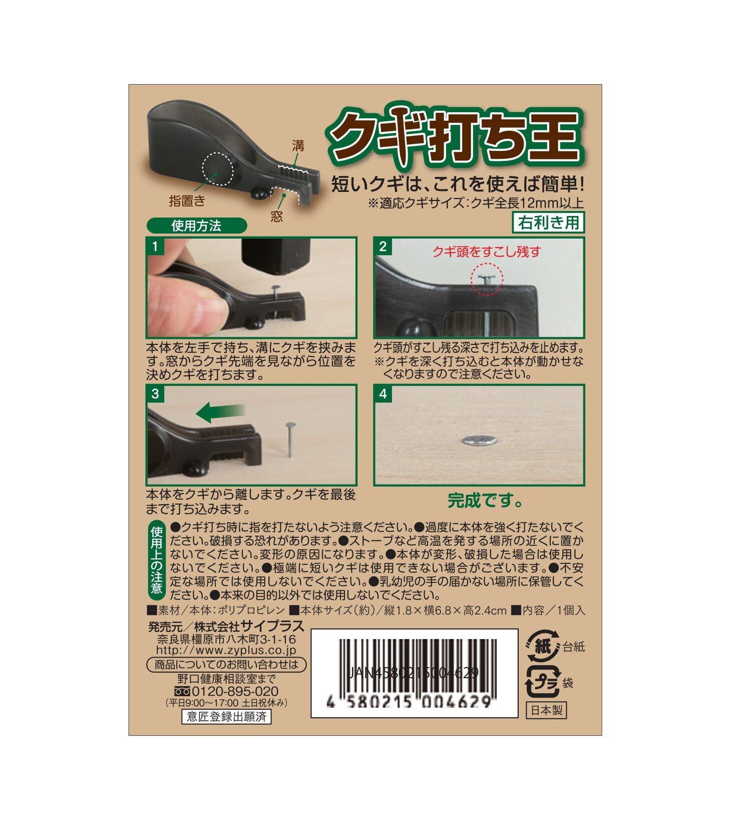 サイプラス クギ打ち王(右利き用) 指で持てない短いクギ 糸掛け曼荼羅 DIY 日曜大工