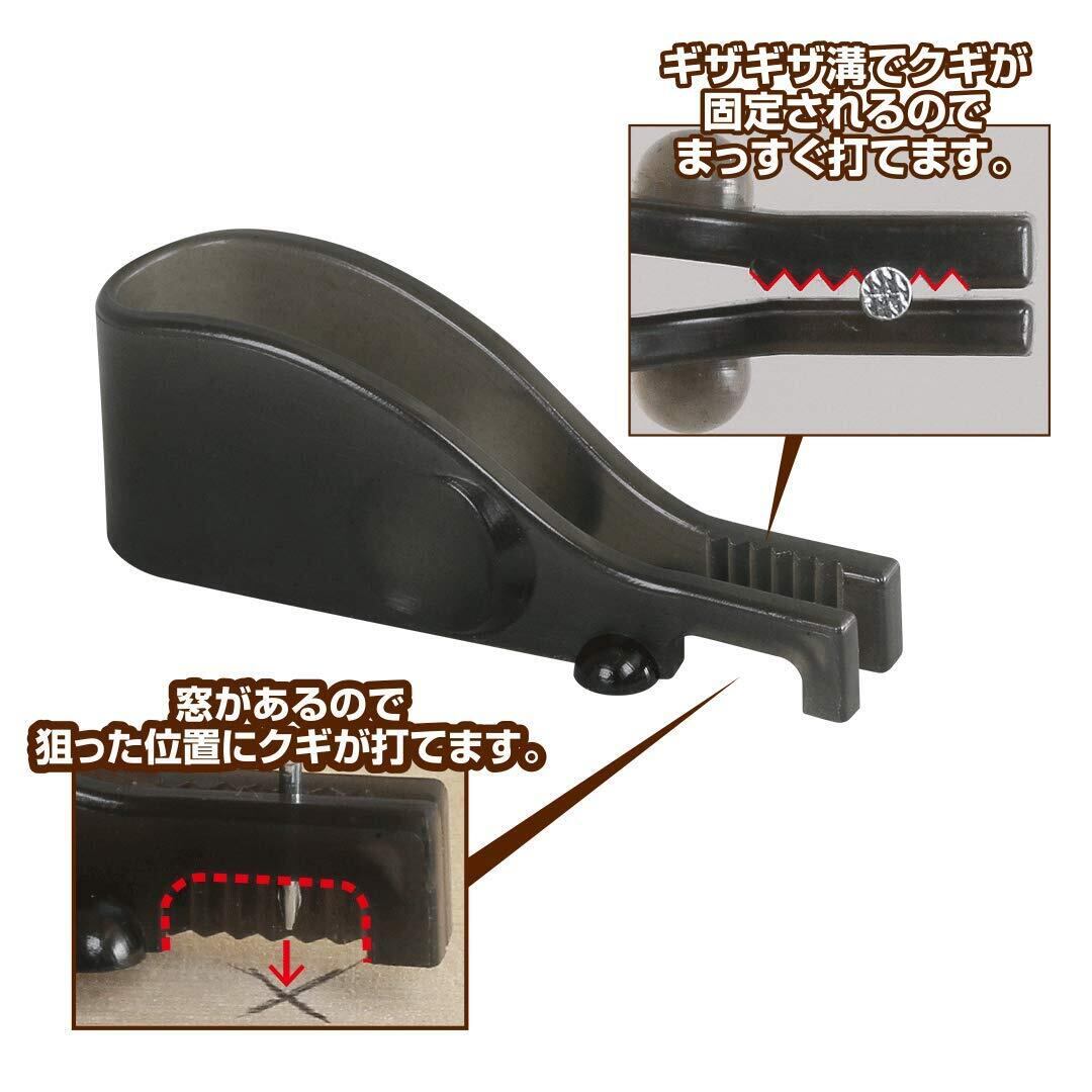 指で持てない短いクギが簡単に打てる!DIY初心者もこれで安心!短いクギは指で持ちにくく、金づちで打つことが難しいですよね。そんな時はこれ!本品の先端部分に短いクギを挟んで金づちで打つだけ。壊れにくい樹脂製なので何度も繰り返し使用できます。
