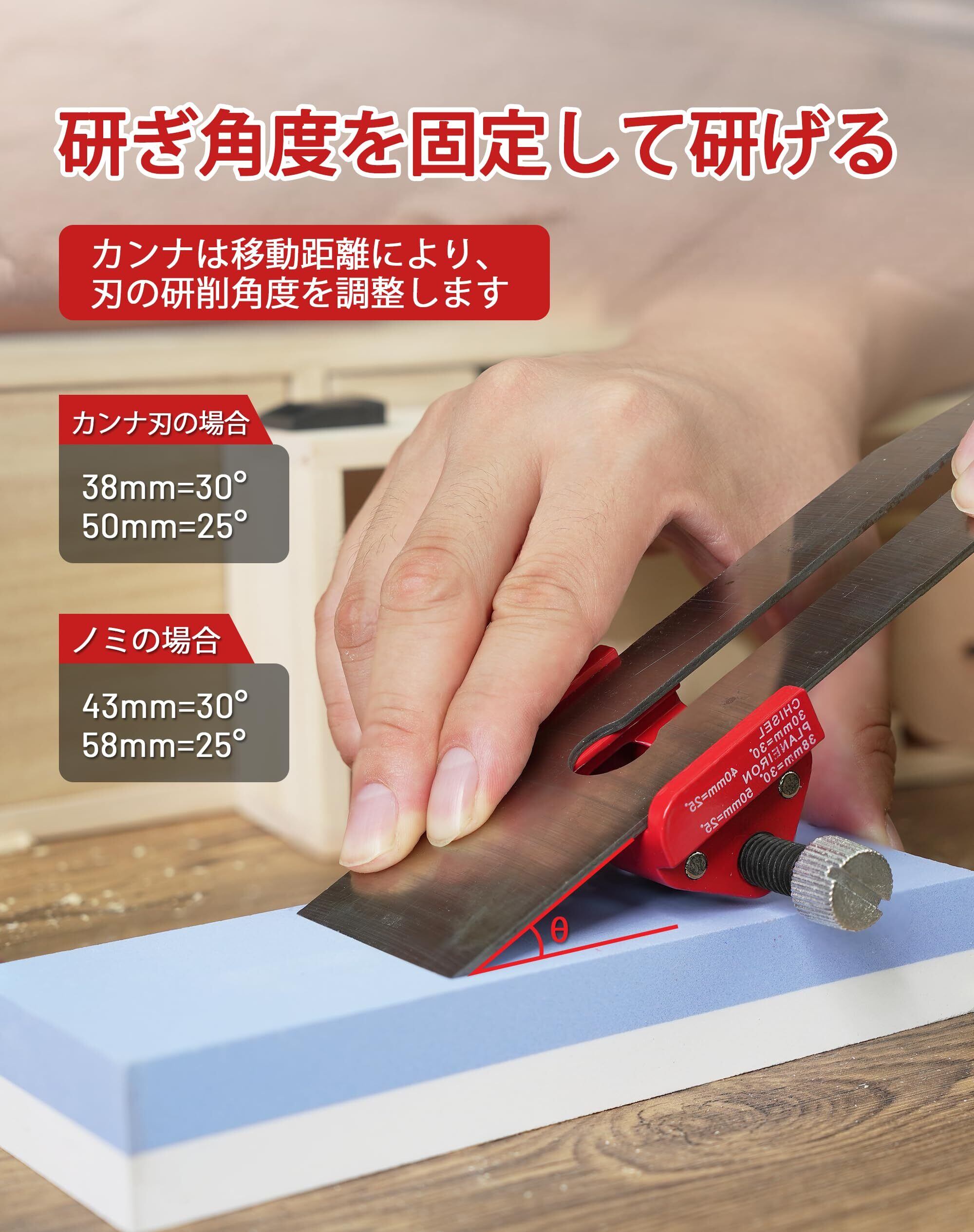 EZARC(イザーク) ノミ・カンナ研ぎ治具 刃研ぎ角度固定 角度調整可能 鑿 研ぎガイド 鉋 研ぎ器 ノミ研ぎ治具 木工 工具
