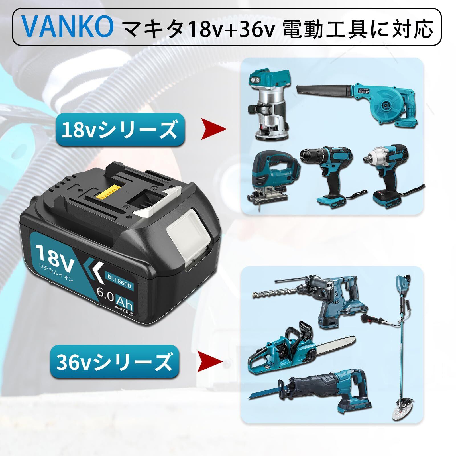 VANKO 互換 マキタ 18v バッテリー BL1860B 6000mAh大容量 1個 マキタ バッテリー 18v BL1815N BL1830B BL1860Bなどに互換可能 LED残量表示 A+グレードセル採用 大型基板搭載 高耐久性 日本国内PSE取得済