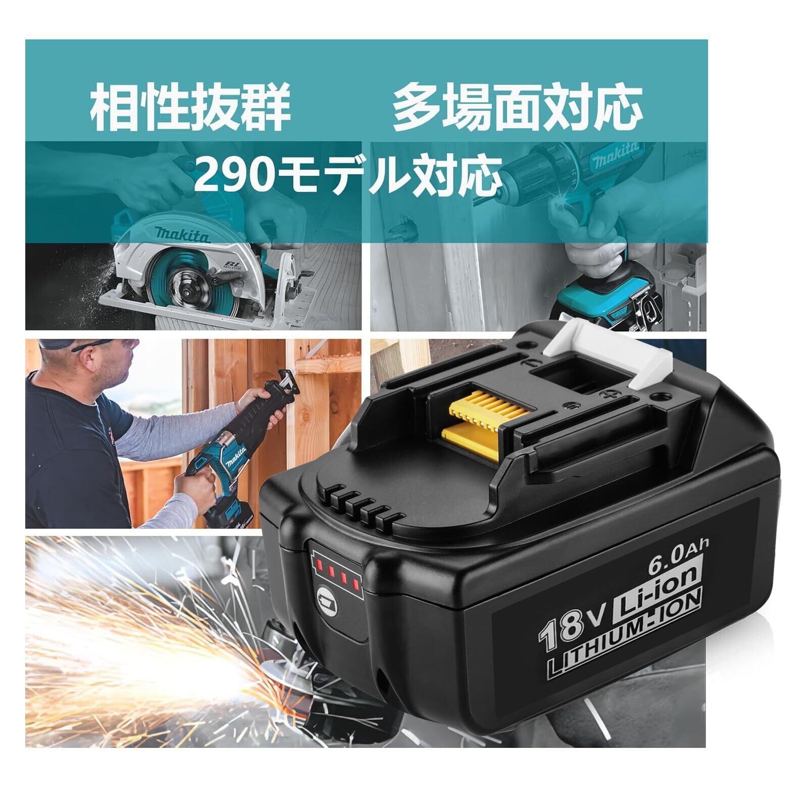 【新着商品】マキタ18Vバッテリー互換BL1860B対応マキタバッテリー 6.0Ah BL1830 BL1840 BL1850 BL1860 BL1830b BL1840b BL1850b リチウムイオン 電池 LED残量表示付き 電動工具用 マキタ互換 PSE認証済 4個セット 2億円の製造物責任険付