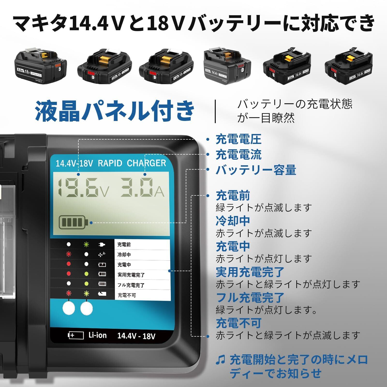 VANKO 互換 マキタ 18v バッテリー 充電器セット BL1860B 6.0Ah大容量 2個付き DC18RF充電器 液晶パネル付き マキタ 18v バッテリー BL1815N BL1830B BL1860Bなど対応可能 LEDランプ残量表示 A+級セル採用 大型基盤搭載 高耐久性 日本国内PSE認証取得済み 2億円製造物責任保険付