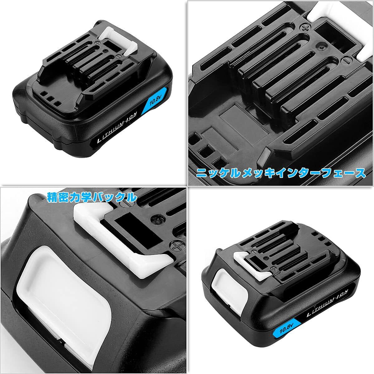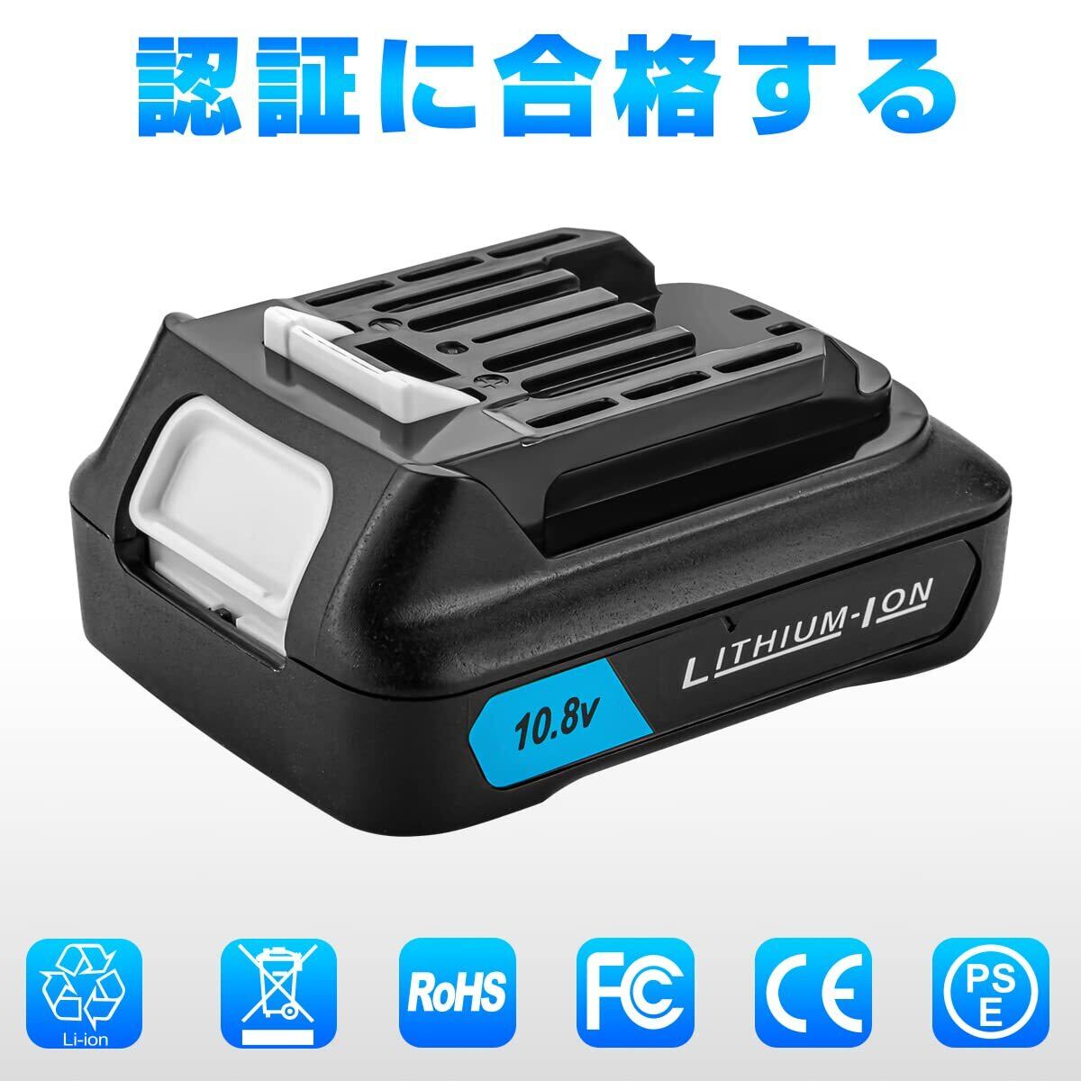 【商品のメリット】容量が拡大し、3000mAh大容量で長時間作業が可能。マキタ10.8V純正バッテリーと同様に使用でき、遜色がない互換品です。メモリー効果がないので、充電を続けてもいいです。自己放電が少ないため、長期保存しても充電に近い作業ができます。制御基板には充電を制御する保護回路を搭載!充電回数を減らし、高容量の小型軽量化を実現し、作業効率を大幅に向上しました。