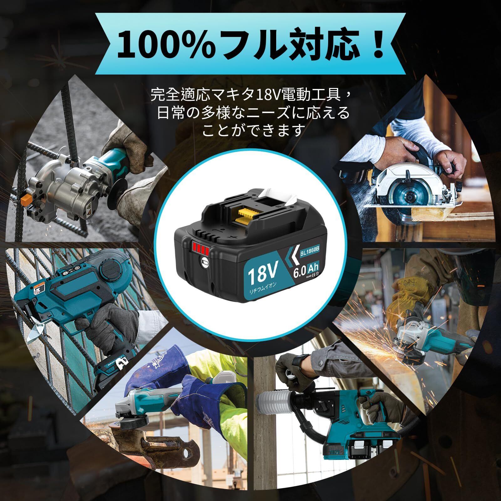 Boetpcr 互換 マキタ 18v バッテリー BL1860B 6.0Ah大容量 2個セット マキタ 互換 バッテリー 18v BL1815N BL1820B BL1830B BL1860Bなどに対応 BMS基板搭載 最新セル採用 LEDランプ残量表示 長時間稼働可能 CE PSE認証取得済み ブルー
