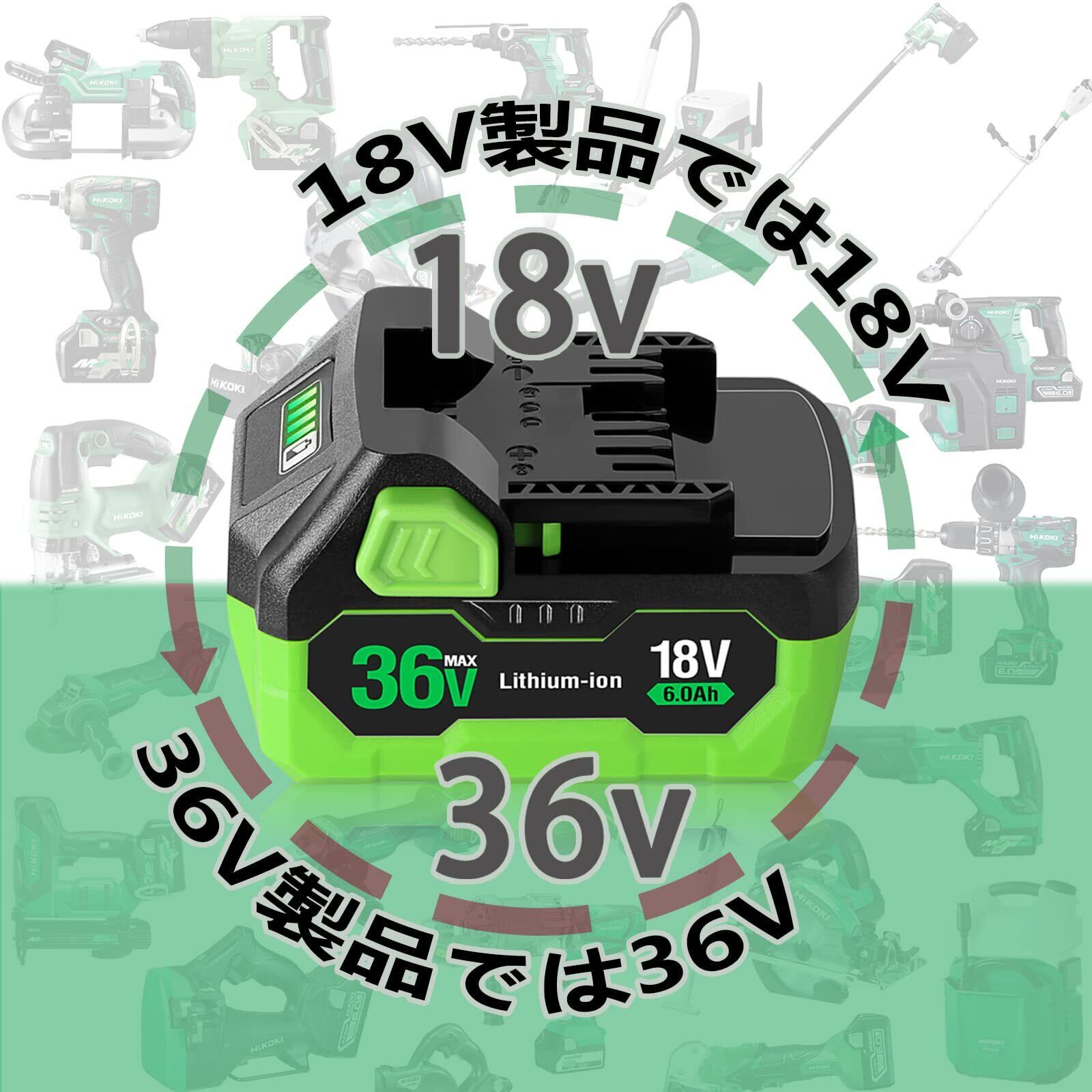 【相性抜群】ハイコーキ/HiKOKI/日立工機の36Vマルチボルトシリーズと従来の18V製品を互換できます(*総計114モデル)。純正充電器対応。※電池装着で自動切替、従来の36v製品(BSL3620、BSL3626、BSL3660対応製品)にはご使用になれません。