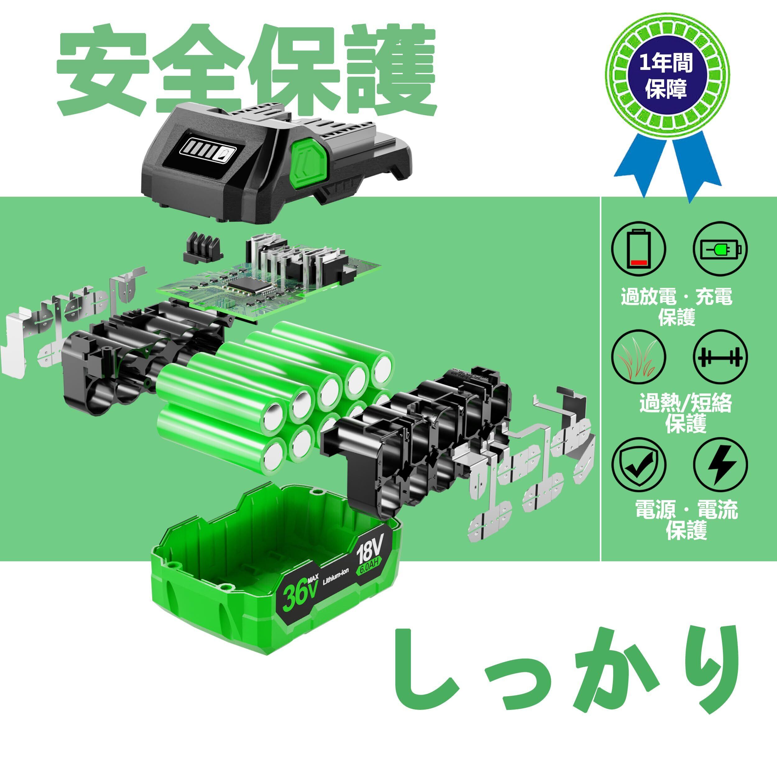 互換 ハイコーキ 36V バッテリー 2個セット 3.0Ah(36V)/6.0Ah(18V)電池装着で自動切替BSL36B18/BSL36A18/BSL36C18/BSL36A18Bに互換性あり