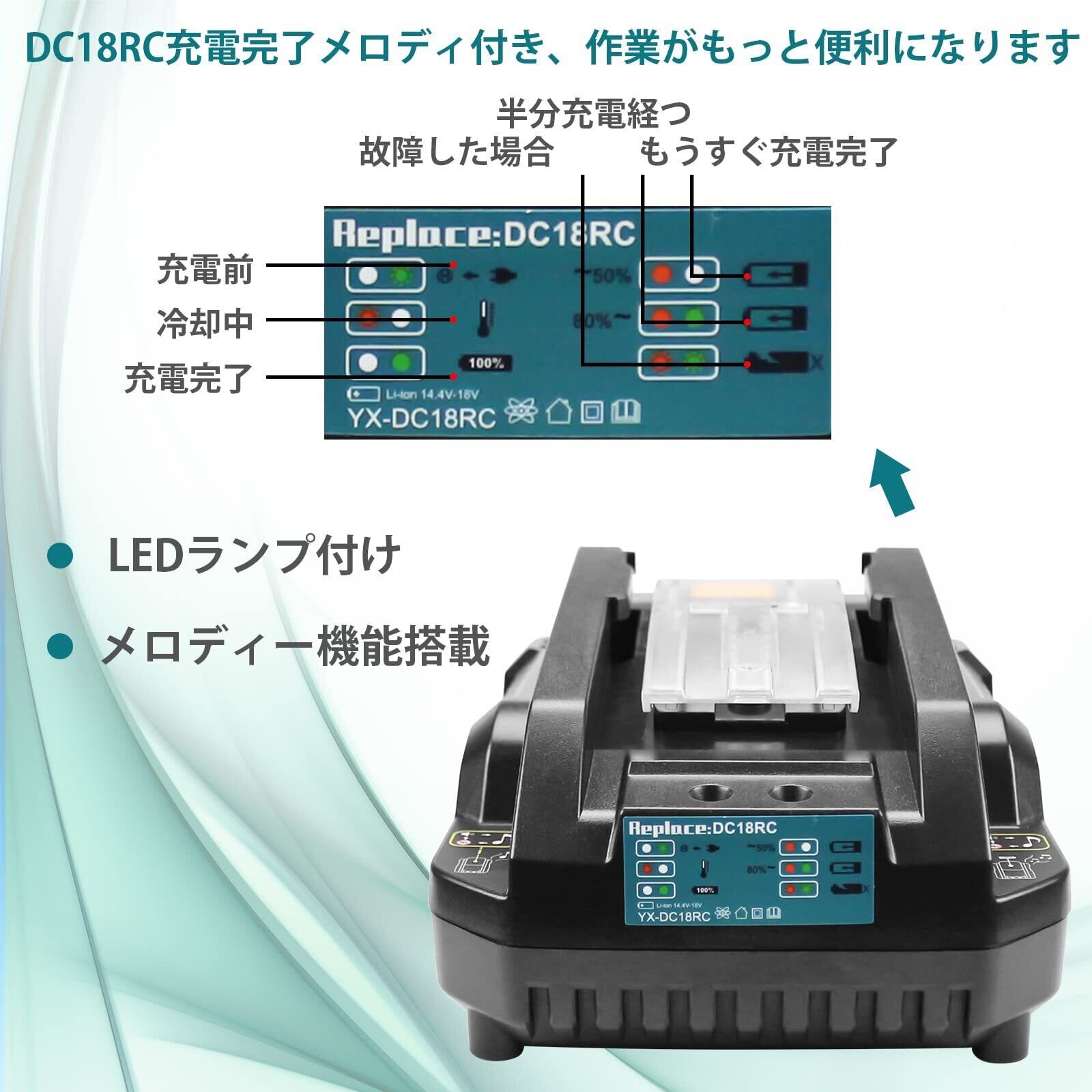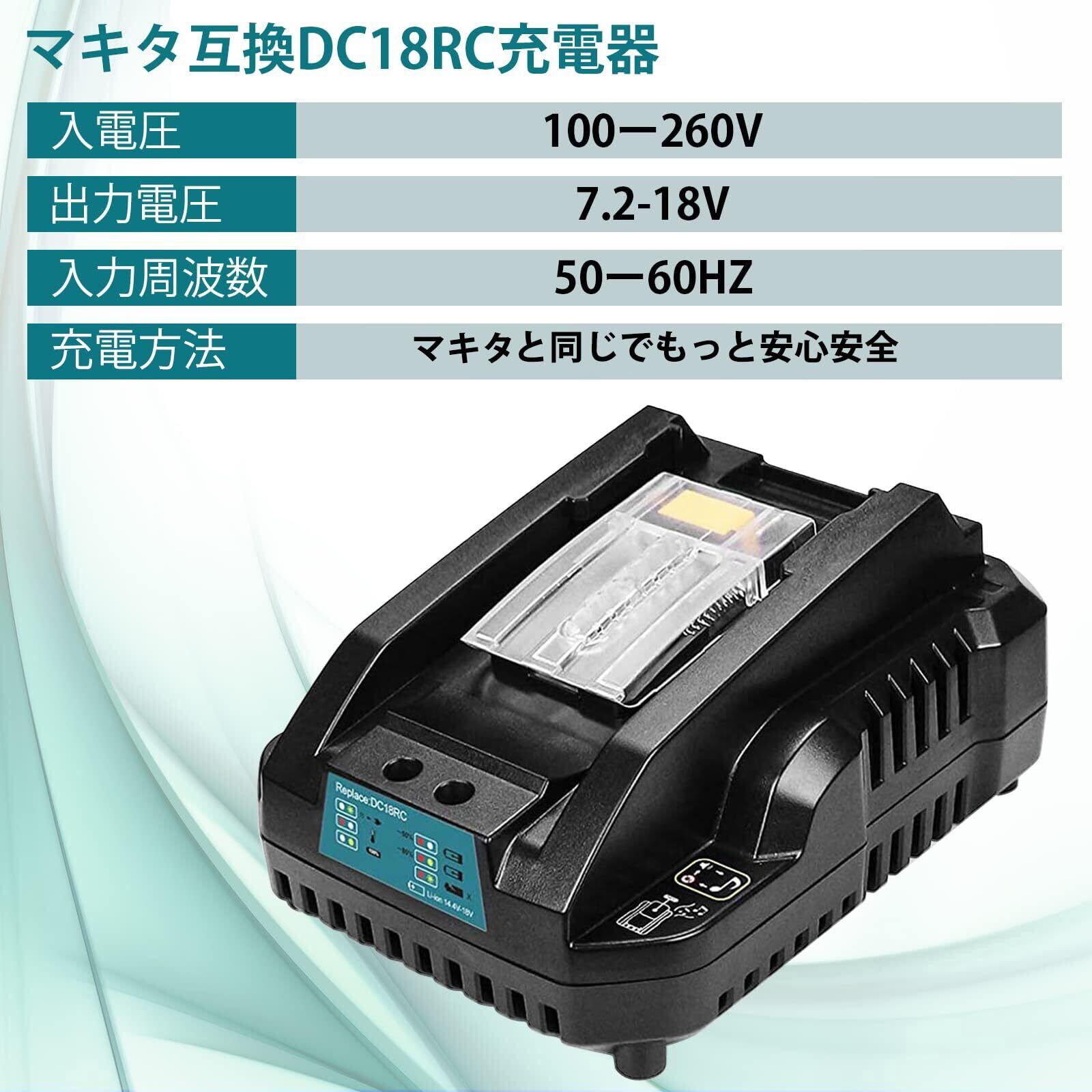 ***【安心な保護機能】マキタ14.4v~18v DC18RC 過充電防止・過放電防止・過電流防止・過電圧防止・過熱防止機能付き、純正品と遜色なく使えます。DC18RC充電器、搭載されたメモリチップが充電履歴を記憶充電時にこの履歴を充電器にデジタル通信し、バッテリーの状態(高温、満充電後の再充電、過放電等)を判断します。硬質プラスチック成型ボディーで、軽量化・優れた耐久性を実現させます。