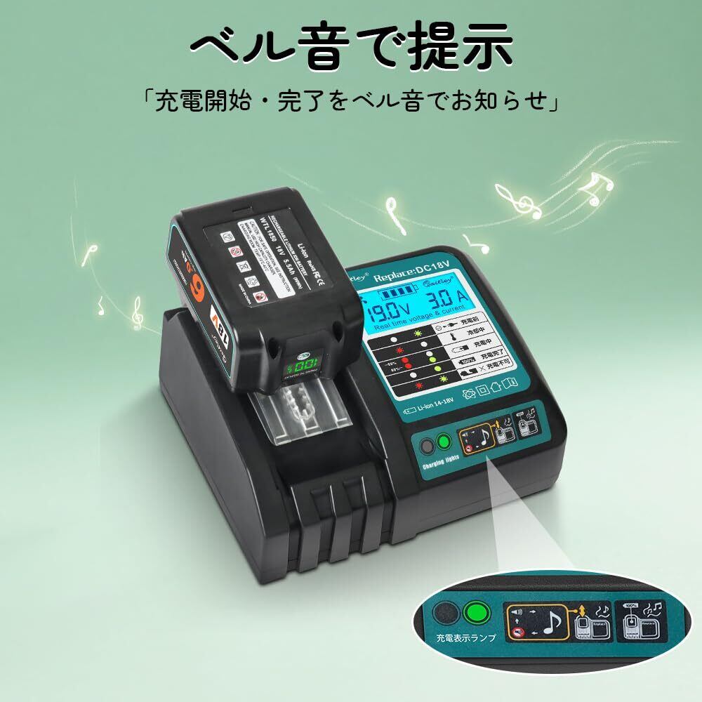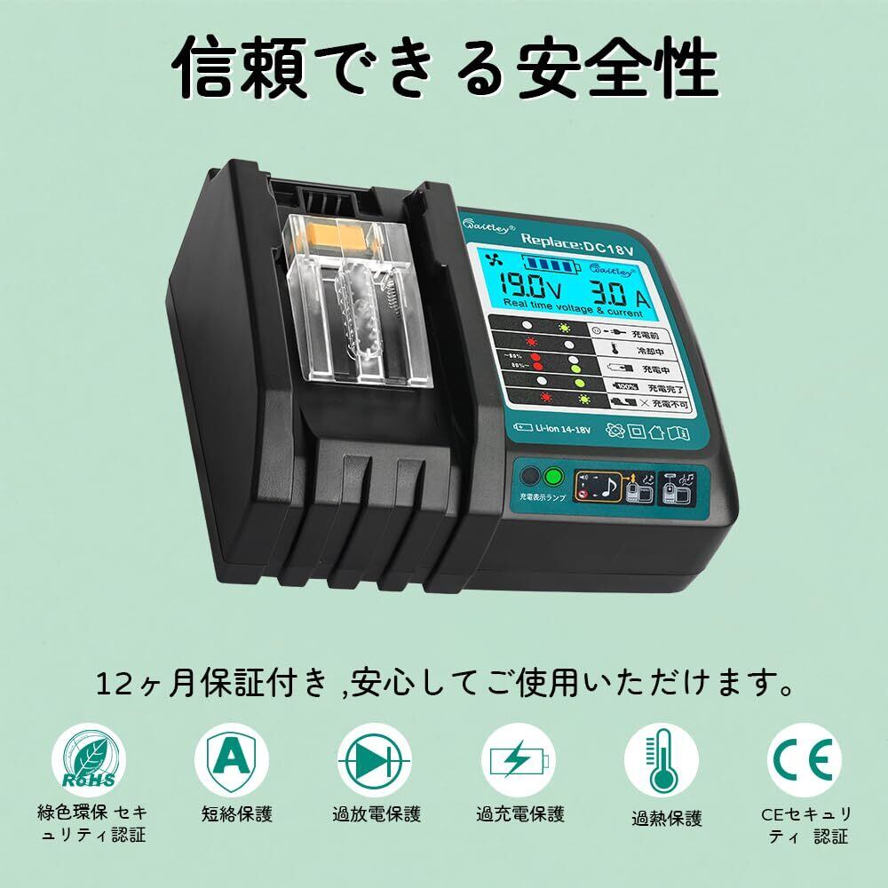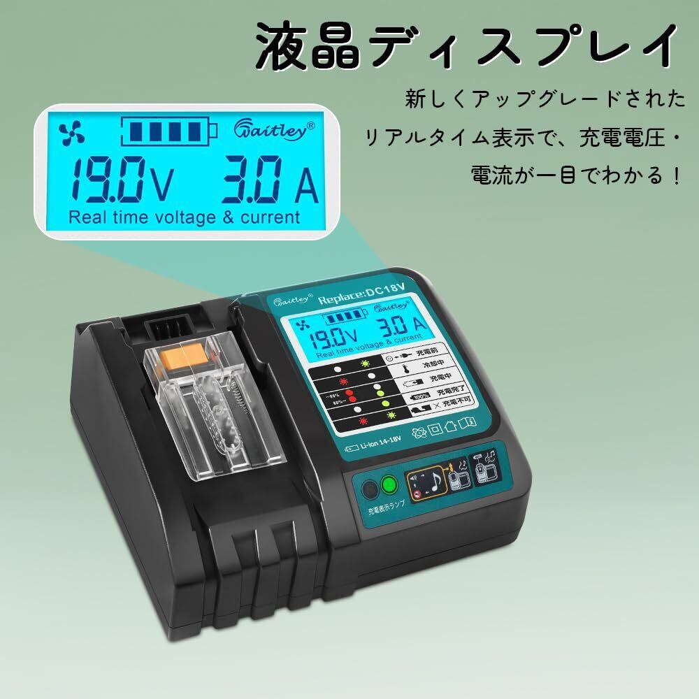 【2025最新】Waitleyマキタ DC18V充電器 互換 18V /14.4Vバッテリー充電器 冷却ファン付き 液晶パネル付き 充電開始/完了メロディ付 マキタ18V バッテリー 対応 BL1460 BL1430 BL1860 1830など充電可能 【バッテリー別売】